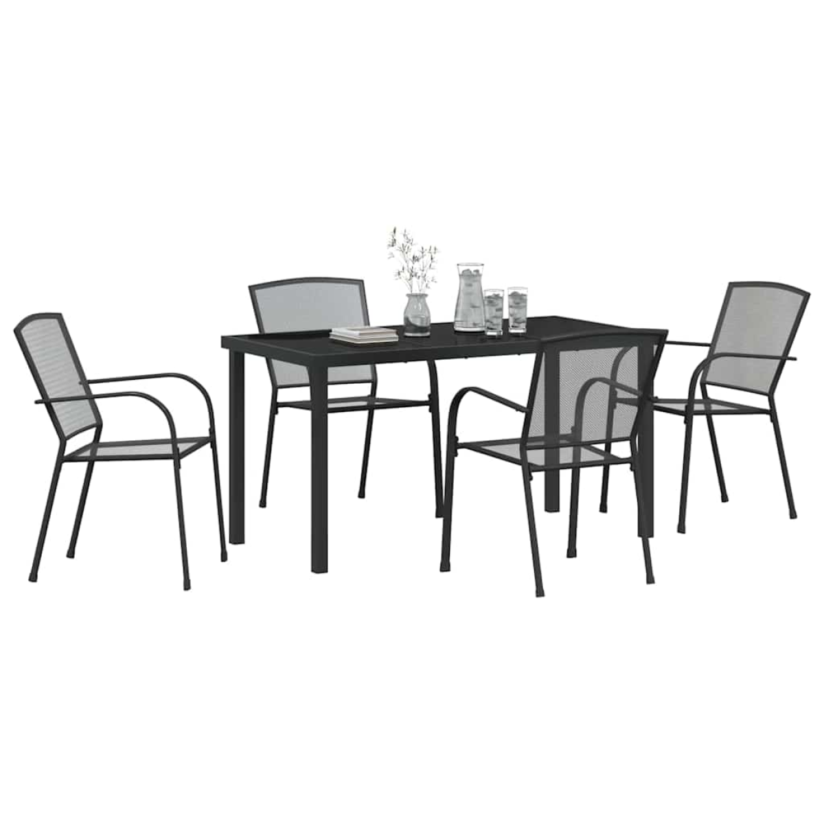 Check out this stylish garden furniture set! It’s a fab mix of modern design and practicality, just right for turning your outdoor space into a cosy getaway. With its sleek shape and smooth finish, it's a proper eye-catcher and comfy too, perfect for any garden or terrace. It’s all about gathering and chilling, letting you enjoy those long summer days and lovely evenings with pals and family, while adding a dash of elegance to your outdoor space. Materials: Built from tough powder-coated steel, this set is all about durability and can handle whatever the weather throws at it. The sturdy steel means you’re set for years, and the powder coating helps it resist and , so it’s as stylish as it is practical. Included Components: Each piece features a posh tempered glass tabletop that not only looks great but is also ideal for dining or chilling out. The comfy back and armrests let you relax properly. The anthracite colour ties everything together nicely, boosting the aesthetic without losing out on functionality. Features / Function / Design: The stackable design is super handy for saving space, making it easy to tuck away when you’re not using it. Perfect for folks with less room, it clears up your outdoor space. Recommended Uses: Just right for gardens, terraces, or any outdoor spots where classy lounging or dining is on the cards. It fits right in for both home and business settings, whether it’s casual dinners or bigger get-togethers. The versatile style adjusts easily to different decor themes. Care & Maintenance: Keeping your furniture in top shape is easy with recommended covers when you’re not using it. A quick wipe down with a dry cloth keeps it looking sharp. Just steer clear of harsh cleaners to keep it looking fab and lasting longer.