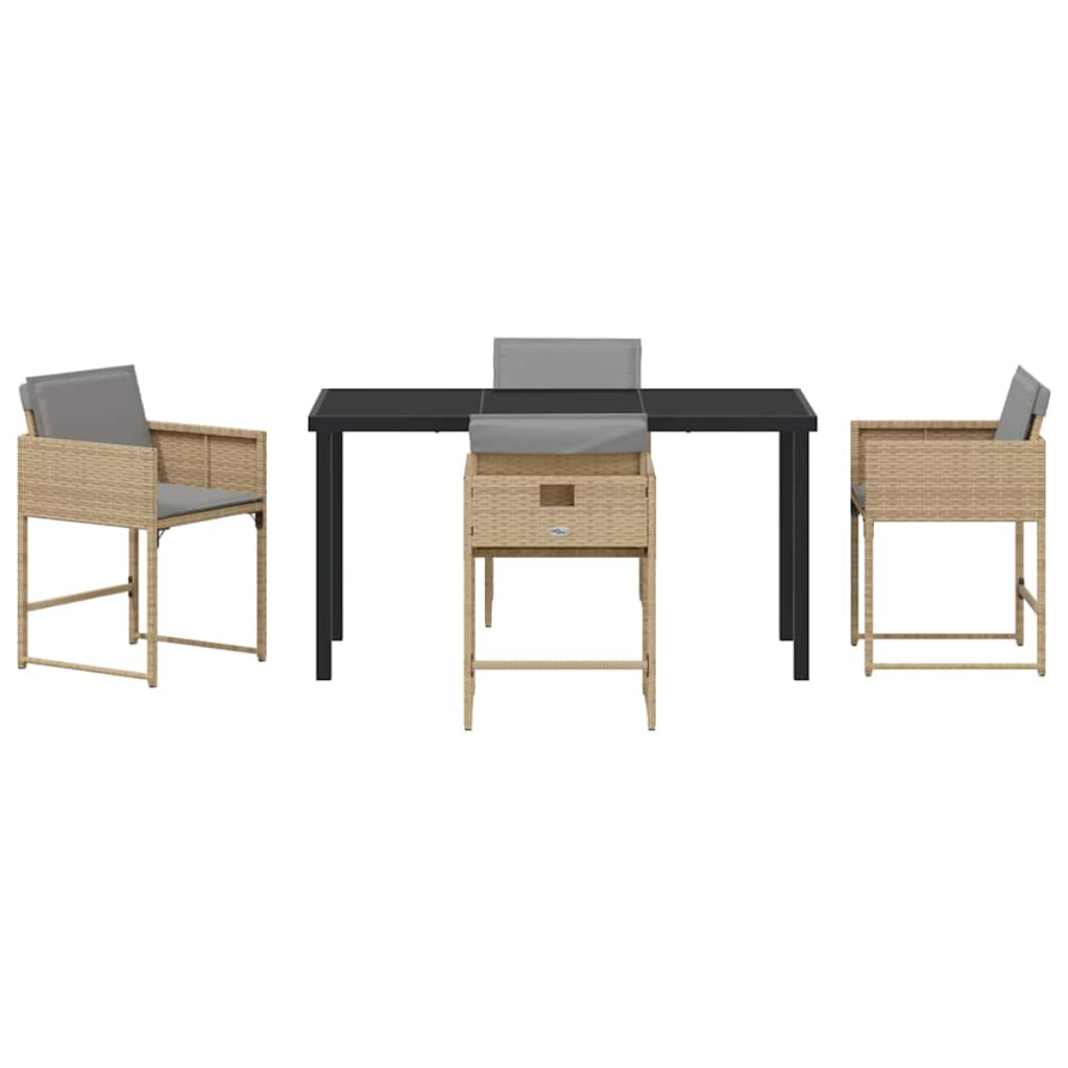 This Modern Garden Dining Set is a smart and stylish way to upgrade your outdoor dining experience. With its clean lines and minimalist look, it fits right into any modern terrace or garden. The mix of sleek poly rattan and shiny glass on top makes it a chic centrepiece for family meals or social occasions without any hassle. Its contemporary vibe and practical design are sure to turn any summer garden into a comfy and inviting space. Durable Materials: Built with tough poly rattan, this dining set looks fab and lasts ages. The material stands up to daily wear and tear, keeping it looking great all year round. The smooth glass surface adds a classy touch and is a breeze to clean. Plus, the solid steel frame gives it a sturdy backbone, holding up well against the weather. Complete Dining Experience: This set includes everything you need for dining, featuring poly rattan chairs with comfy backrests and armrests, and a spacious table with a sleek black glass surface. The chairs are stylish and comfortable, blending nicely with the modern look of the glass table. Perfect for creating awesome outdoor dining memories. Modern Functional Design: Every part of this dining set is designed for ease and looks great. With a comfy seating arrangement, it fits family members or guests easily, encouraging connection in an inviting outdoor space. Versatile Outdoor Use: Great for terraces, gardens, and patios, this set fits seamlessly into different outdoor spots. Its modern style matches a variety of buildings, providing a stylish and practical setting for summer get-togethers and casual dinners. Effortless Maintenance: The dining set is easy to take care of. We suggest using a protective cover when it's not in use to extend its life, and a quick clean of the glass and rattan keeps it looking sharp. This simple care routine means more time for fun and less on upkeep.