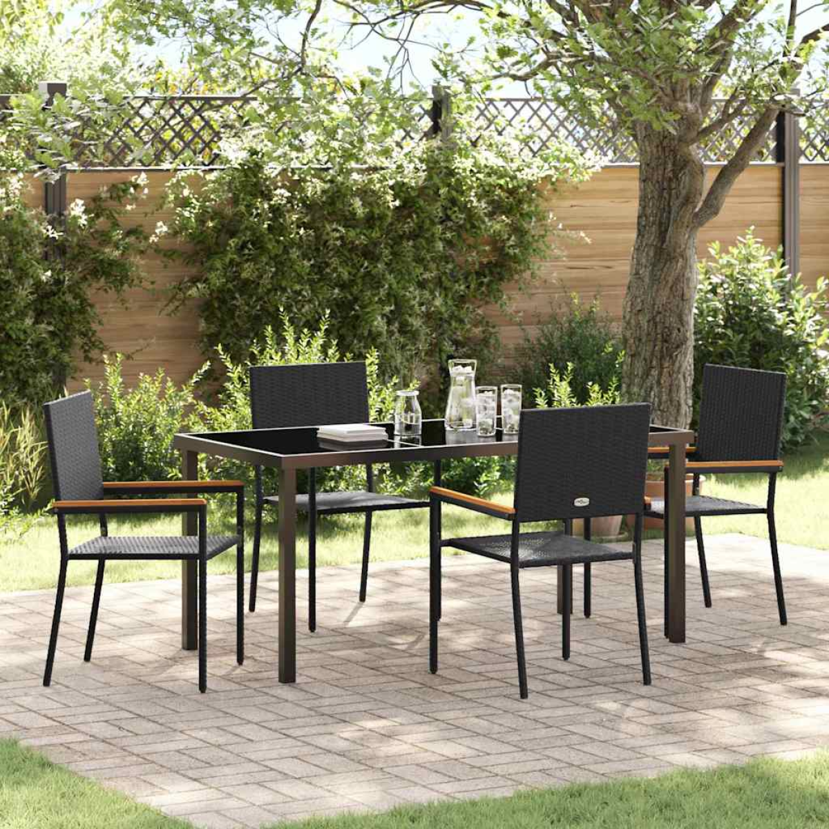 Check out this modern garden furniture set—it’s got the perfect mix of looks and practicality for outdoor living. With its clean lines and no-fuss style, it fits in beautifully with the garden, giving you a comfy spot to sit. Whether it’s for a garden party or just kicking back, this set makes any space look better and is super handy. Durable Materials: This set is made with tough poly rattan, so it lasts and stands up to the weather. It's teamed up with powder-coated steel, which boosts its durability and gives it a cool modern twist, making it great for outdoor use. Included Components: Each bit of furniture has poly rattan backrests, steel frames, and tempered glass tops to ensure they all look good and last. The solid acacia wood armrests add a nice touch and give you support. Contemporary Design: With its minimalist vibe, this set rocks sleek lines and square legs, making it perfect for modern gardens and terraces. It's easy to put together, needing just a screwdriver, keeping things fuss-free. Outdoor Uses: This furniture set is all about making gardens and terraces more enjoyable, giving you a comfy and stylish area for hanging out, whatever the weather—with materials that resist UV and water. Easy Maintenance: Keeping it clean is a doddle. Just use a cover when it’s not in use, avoid harsh cleaners, and wipe it down to keep it looking sharp over the years.