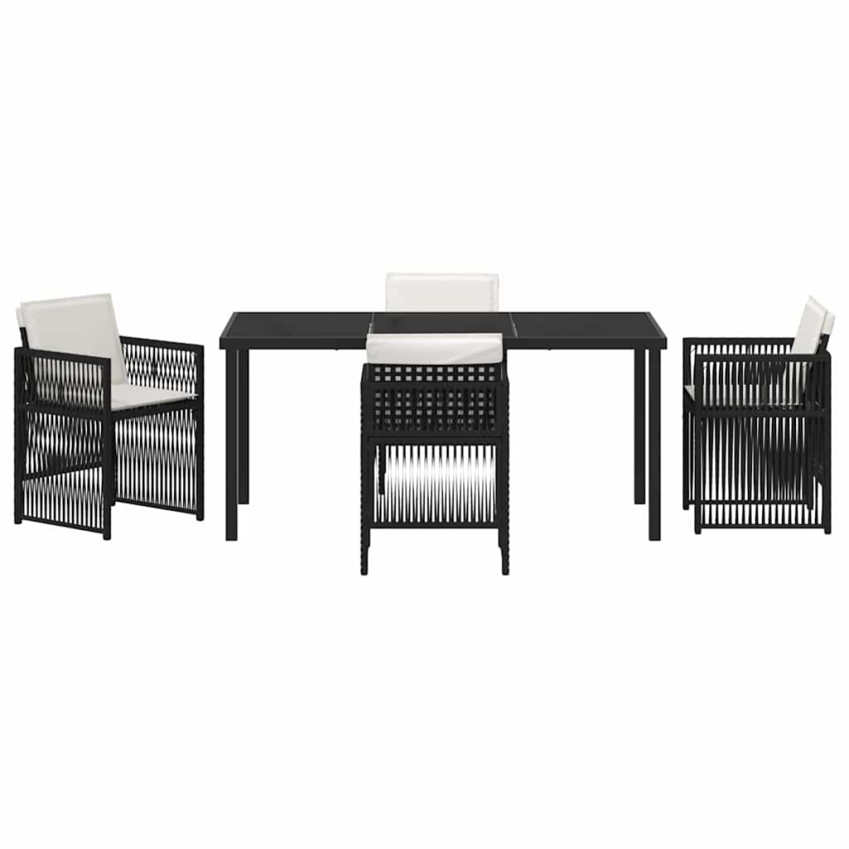 This Modern Garden Dining Set with Cushions is a stylish and flexible piece for your outdoor area. It's got a simple yet functional design with sleek lines that really fits the vibe of any garden or patio. Whether you're having dinner with friends outside or just enjoying a sunny breakfast, this set makes your outdoor space feel more inviting and comfortable with its smart poly rattan and tempered glass table. Materials: This dining set is mainly made from poly rattan, giving it both durability and a nice look—perfect for outdoors. The steel bits add strength and stability, so it's ready for regular use and all sorts of weather. Included Components: You’ll find a rectangular table with a tempered glass top that’s easy to clean, alongside some comfy poly rattan chairs. Each chair has foam-padded cushions with zippers, making them comfy and easy to care for. Features / Function / Design: The chairs are collapsible, making them easy to store. The simple manual mechanism lets you fold things up quickly, adapting the setup as you like—a brilliant space-saver for outdoor areas. Recommended Uses: Perfect for garden or terrace gatherings, this set creates a warm atmosphere for summer meals and parties. Its straightforward design means it fits in easily with different outdoor layouts. Care & Maintenance: To keep it looking good, pop a cover on the set when you're not using it. The tempered glass surface is easy to wipe down, helping keep it clean.