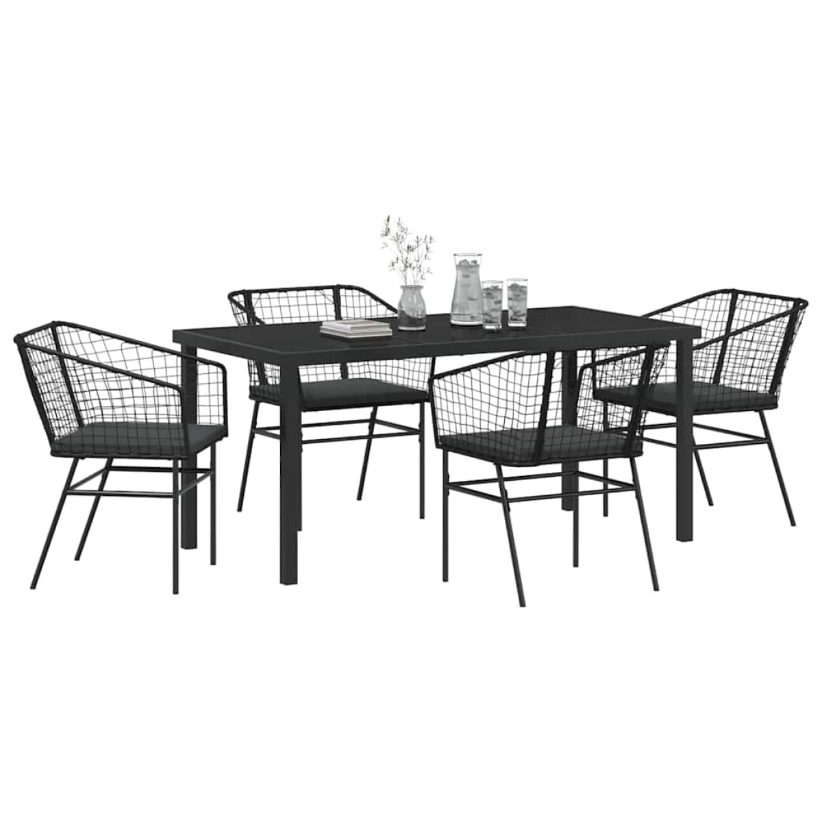 vidaXL Garden Dining Set 5 pcs Black Poly Rattan