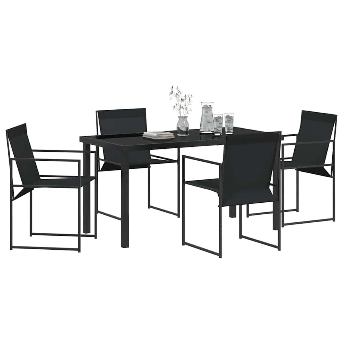 This Modern Garden Dining Set is sure to thrill outdoor lovers with its classy design and practical features. It fits right in with different garden or terrace styles, boasting a wide rectangular table topped with chic tempered glass. It’s the perfect blend of style and function. Set against the bright backdrop of summer gardens, family get-togethers become memorable thanks to this set's good looks and clever design. Materials: This dining set is made with Textilene fabric for the seats and backs, which is UV resistant and super durable for sunny days. The powder-coated steel frames make it last longer and handle the outdoors, looking good while doing it. Included Components: The set has comfy chairs with strong, foldable frames for easy moving and storage. The main table features a tempered glass top, giving you a stylish yet sturdy spot for meals and socialising, creating a seamless outdoor vibe. Features / Function / Design: With a focus on UV resistance, the materials chosen are ideal for outdoor use. Its sleek, clean lines fit right in with a modern aesthetic, making sure the dining set meets your needs and boosts your garden's style. Recommended Uses: Perfect for gardens or terraces, this set fits into outdoor spaces where style and function go hand in hand. It’s fab for laid-back outdoor meals, summer parties, and chilling with your mates. Care & Maintenance: Keep it looking fresh by covering the set when you’re not using it and wiping the surfaces with a soft, dry cloth. Avoid harsh cleaners to keep the powder-coated finish looking good and lasting longer.