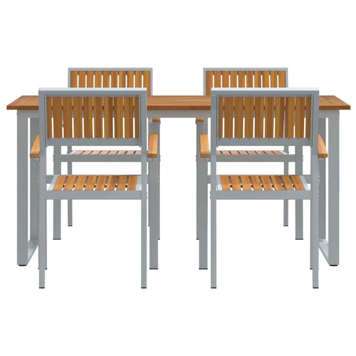 This modern garden dining set really nails contemporary style. It fits right in with any garden or terrace thanks to its clean lines and cool finish. It’s made for gatherings, offering plenty of room and seating for everyone to enjoy outdoor meals, chat, and make memories. With a focus on simplicity and practicality, it's a warm spot for friends and family alike. Its versatile and inviting look makes it perfect for any outdoor bash. Materials: The dining set is made from solid acacia wood, known for its beautiful grain and rich brown tones. Paired with a steel frame, it’s strong and stable for everyday use. The metal bits add a sleek, modern look while standing up to wear and tear. Included Components: With sturdy solid acacia wood armrests, this set is all about comfort and durability. The steel legs keep it steady, able to handle regular use without a hitch. The surface, seating, and frame, made from solid acacia wood, create a finished and stylish look. Features / Function / Design: Designed for the outdoors, this set is weather-resistant, so it works come rain or shine. It seats quite a few, making it fab for get-togethers. Known for its modern vibe, this dining set combines usefulness with appeal. Recommended Uses: Perfect for gardens and terraces, this set takes your outdoor gatherings up a notch. It’s great for casual family dinners, garden parties, and relaxed get-togethers. Care & Maintenance: Keep it looking fresh by using a cover when it's not in use and give it a wipe with a damp cloth. This will keep it safe from rain and help it stay beautiful. Keeping the cushions dry also makes sure they're comfy and will last.