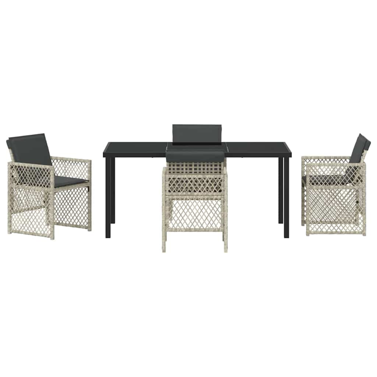 This Modern Garden Dining Set mixes style and practicality, making it a top pick for anyone who loves hosting outside. Its sleek design and minimalist vibe mean it slots into any garden or patio easily, creating a smart spot to share meals with your nearest and dearest. The poly rattan gives it a trendy look while staying comfy even if you’re sitting for a while. Whether you're having a laid-back brunch or a fancy dinner party, this dining set fits the bill, adding a touch of elegance and usefulness. Materials: Made from poly rattan, this dining set is not just good-looking, it’s comfy and tough enough to brave the outdoors. The strong steel frame keeps it sturdy and safe, whatever the occasion. Poly rattan is chosen for being durable and stylish. Included Components: The set has a roomy dining table and matching chairs, ready for all your outdoor dining needs. The chairs have backrests made from poly rattan and steel, making them both strong and comfy. The steel legs ensure a solid base with a classic look. Features / Function / Design: With a modern twist, this dining set features clean lines and simple elements, making it a must-have for any outdoor area. Its durable design guarantees it’ll last, and the solid steel frame keeps the table stable, even during heavy use. Recommended Uses: Ideal for gardens and patios, this dining set boosts outdoor spaces focused on socialising and entertainment. Whether it’s family dinners or sunny alfresco meals, it’s perfect for both laid-back vibes and formal occasions. Care & Maintenance: To keep your dining set looking sharp, use protective covers when it’s not in use. Clean it regularly with a dry or damp cloth to maintain its original appearance. Every now and then, check and tighten any screws or bolts to ensure it stays sturdy.