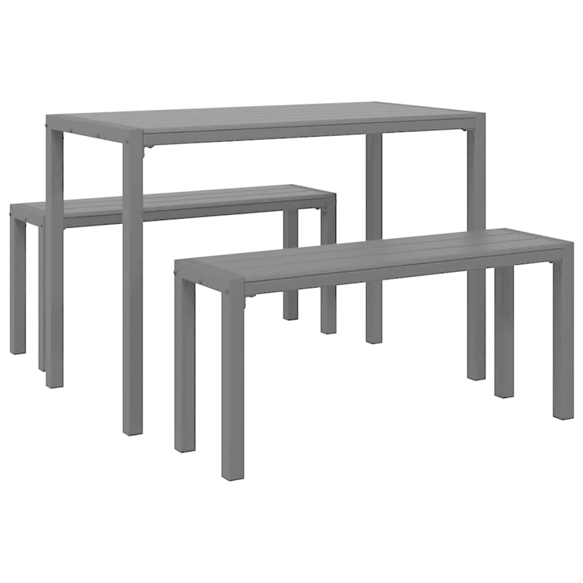 This Garden Dining Set is here to make your outdoor time stylish and practical, just what modern folks are after. It’s got a rectangular shape, blending simplicity and usefulness perfectly for today’s gardens and terraces. Just picture hosting a lovely meal outside with your mates, soaking up the outdoors as you enjoy this chic setup. Material The Garden Dining Set has a solid steel frame and post legs for reliability. Its sturdy steel structure is built to take on all sorts of weather, giving you strength and stability throughout the seasons. Included Components: The set includes two spacious benches and a strong table, giving you enough seating and surface for outdoor brunches and dinners. Each piece is designed for comfort and practicality. Features / Function / Design: With clean and minimal lines, this set shines in modern style. It not only looks great in your garden but also fits in with different decor styles, making the most of your space. Recommended Uses: Perfect for gardens, terraces, and patios, this set is super handy—great for outdoor meals, casual catch-ups, or just enjoying a quiet morning coffee while soaking in the fresh air. Care & Maintenance: To keep it looking good, give it a wipe-down with a dry cloth regularly. Stay away from harsh chemicals to keep its polished look and protect it from the elements over time.