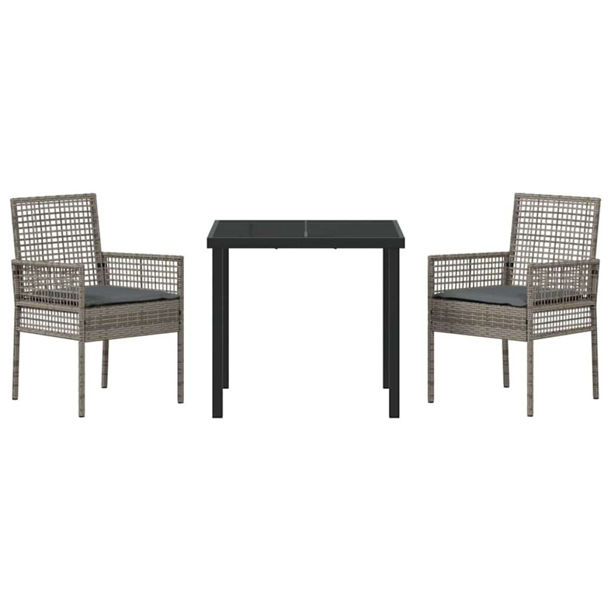 vidaXL Garden Dining Set with Cushion 3 pcs Grey Poly rattan
