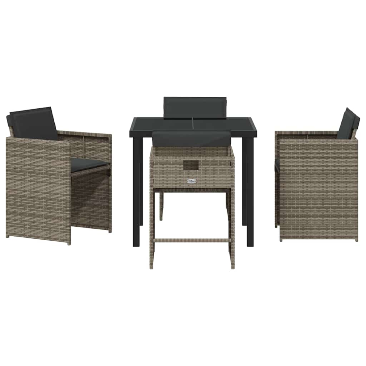 This Garden Dining Set is all about blending style and practicality, making it a fab addition to your outdoor area. Designed with a modern flair, it goes well with any garden or terrace, giving you a stylish yet comfy seating option that everyone will love. Material Composition: Made of weatherproof Poly Rattan that’s great against the elements, this garden dining set keeps its stylish woven look. The powder-coated steel frame adds extra strength and durability. Components: With foldable bits, including a nifty flap on the seat cushions for convenience, these cushions are made of weather-resistant fabric for long-lasting outdoor use. The tempered glass table brings a touch of elegance while still being practical. Innovative Features: It has a manual adjustable mechanism to suit your needs, plus it folds away easily when not in use, making it super portable. Recommended Uses: Perfect for gardens and terraces, this set is ideal for cozy get-togethers. Its sleek design works brilliantly for both small family dinners or larger gatherings, giving you versatility for all sorts of activities at home. Care Instructions: Just clean it with a mild, non-abrasive method and cover it up when not in use to keep it looking sharp. The cushions come off for easy washing, so keeping it all clean is a piece of cake.