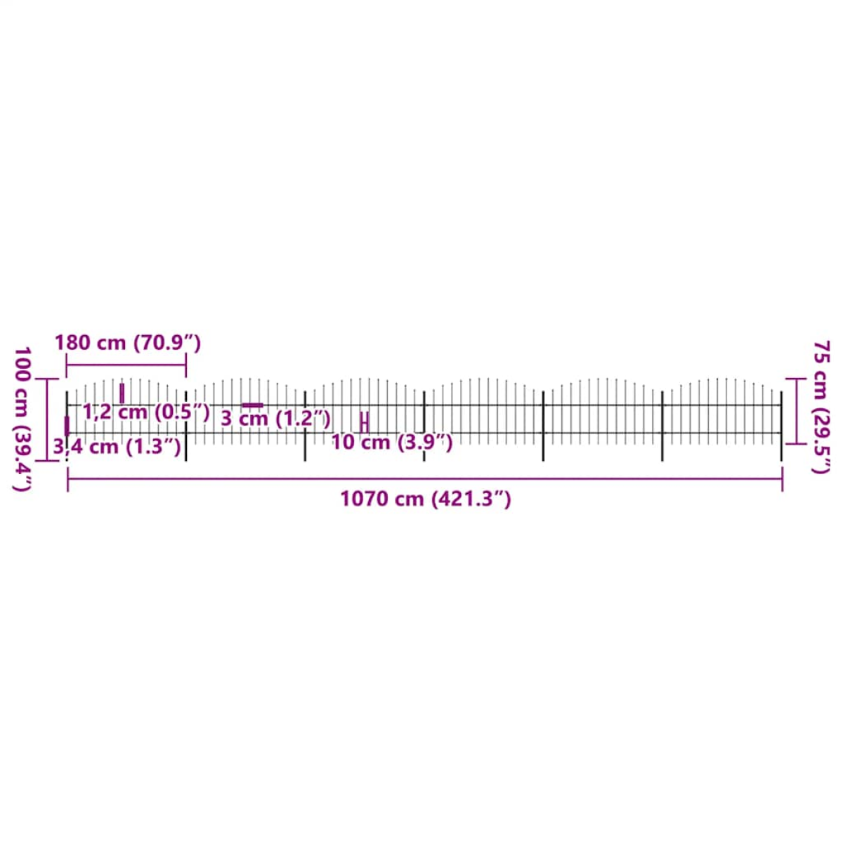 vidaXL Garden Fence with Spear Top Steel 1070x100 cm Black