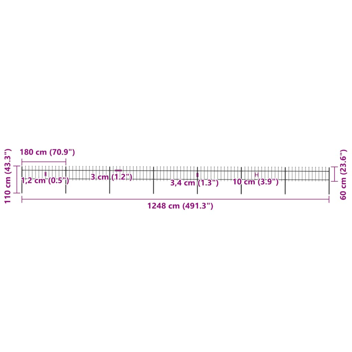 vidaXL Garden Fence with Spear Top Steel 1248x60 cm Black