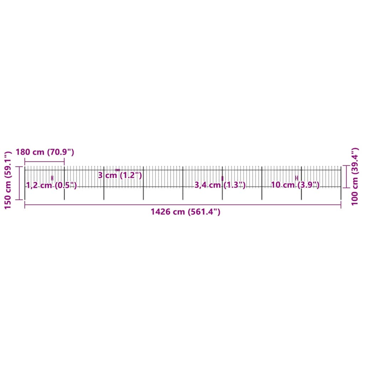 vidaXL Garden Fence with Spear Top Steel 1426x100 cm Black