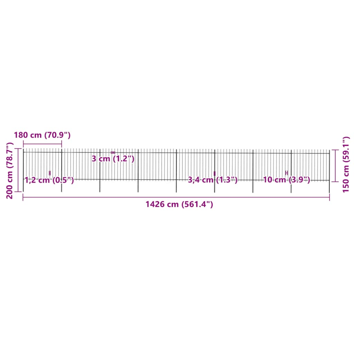 Create an elegant fence around your garden, home, or walkway with our garden fence! Our decorative steel garden fence, consisting of 8 fence panel and 9 posts, has a total length of 13.6 metres. It will form a sturdy, safe and maintenance-free perimeter barrier for your garden, home, or business property. With vertical bars topped with spear ends and strong horizontal brace as reinforcement to the frame, our garden fence will provide a high degree of security. Manufactured from heavy-duty, powder-coated steel, the outdoor fence is exceedingly stable, sturdy and durable. Thanks to the included mounting materials, the garden fence is easy to assemble. Note: You can buy more sets to make the fence as long as you like.