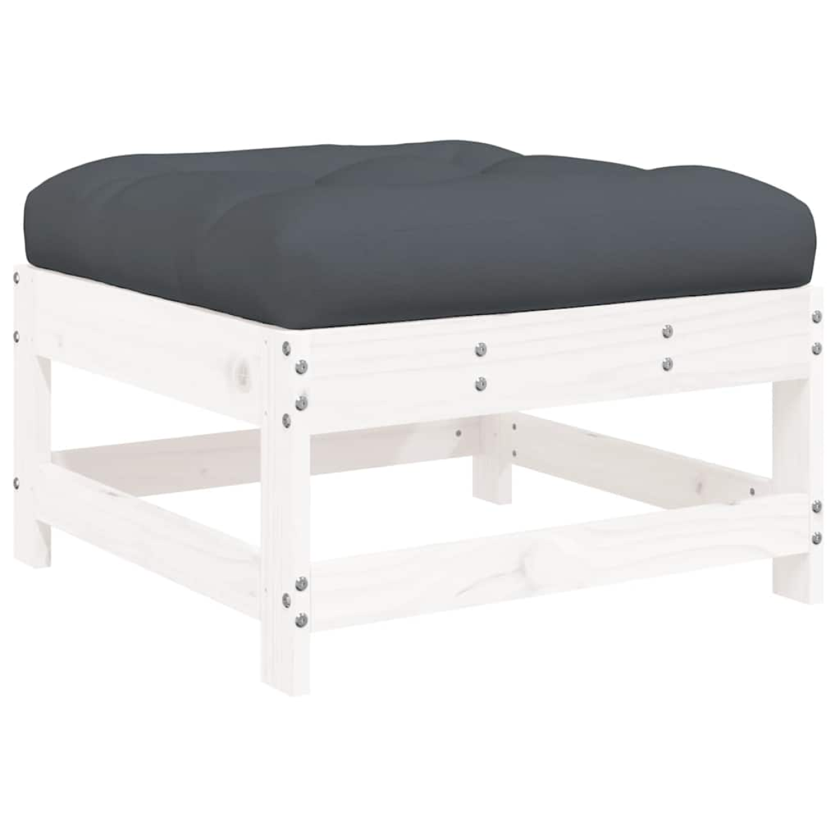 vidaXL Garden Footstool with Cushion White Solid Wood Pine