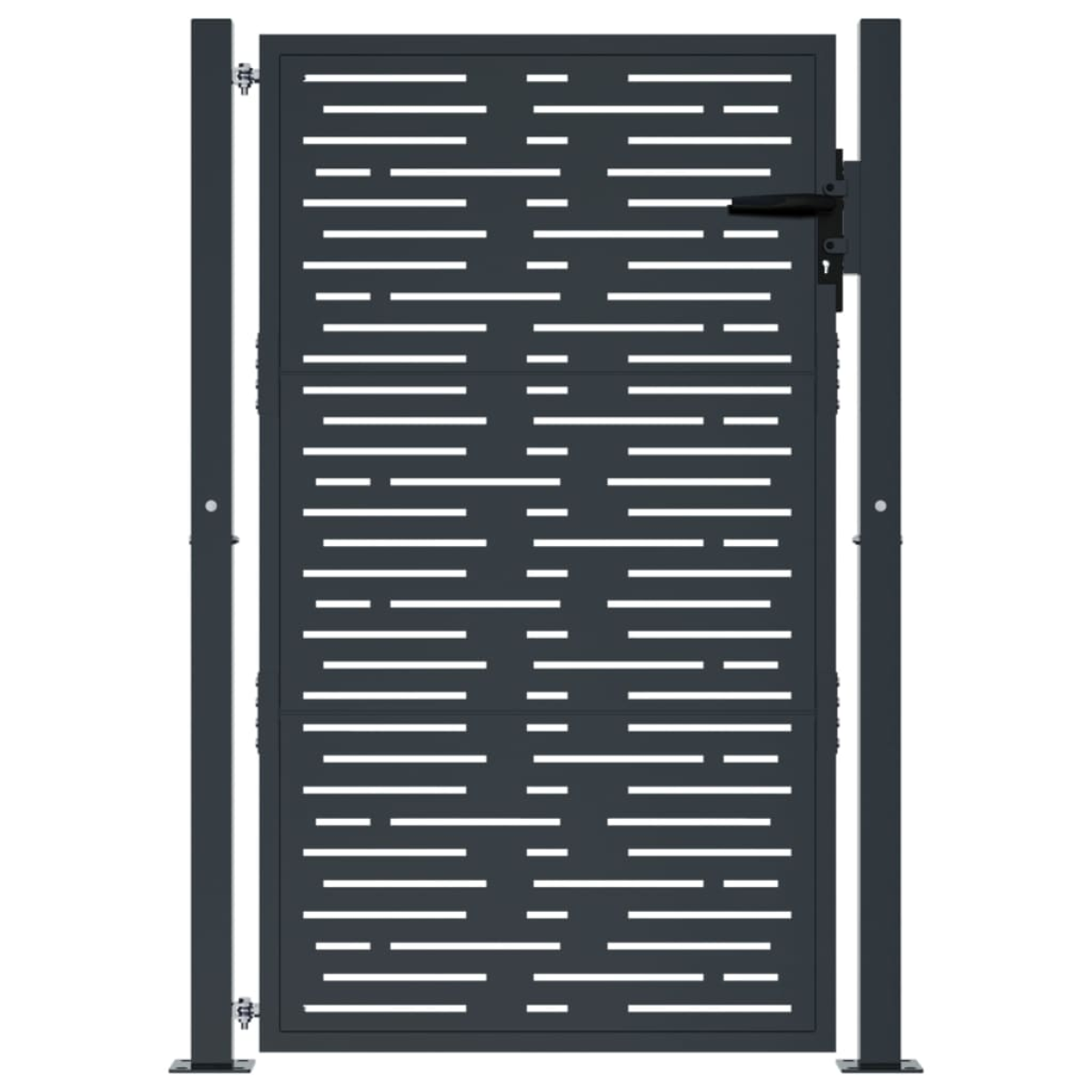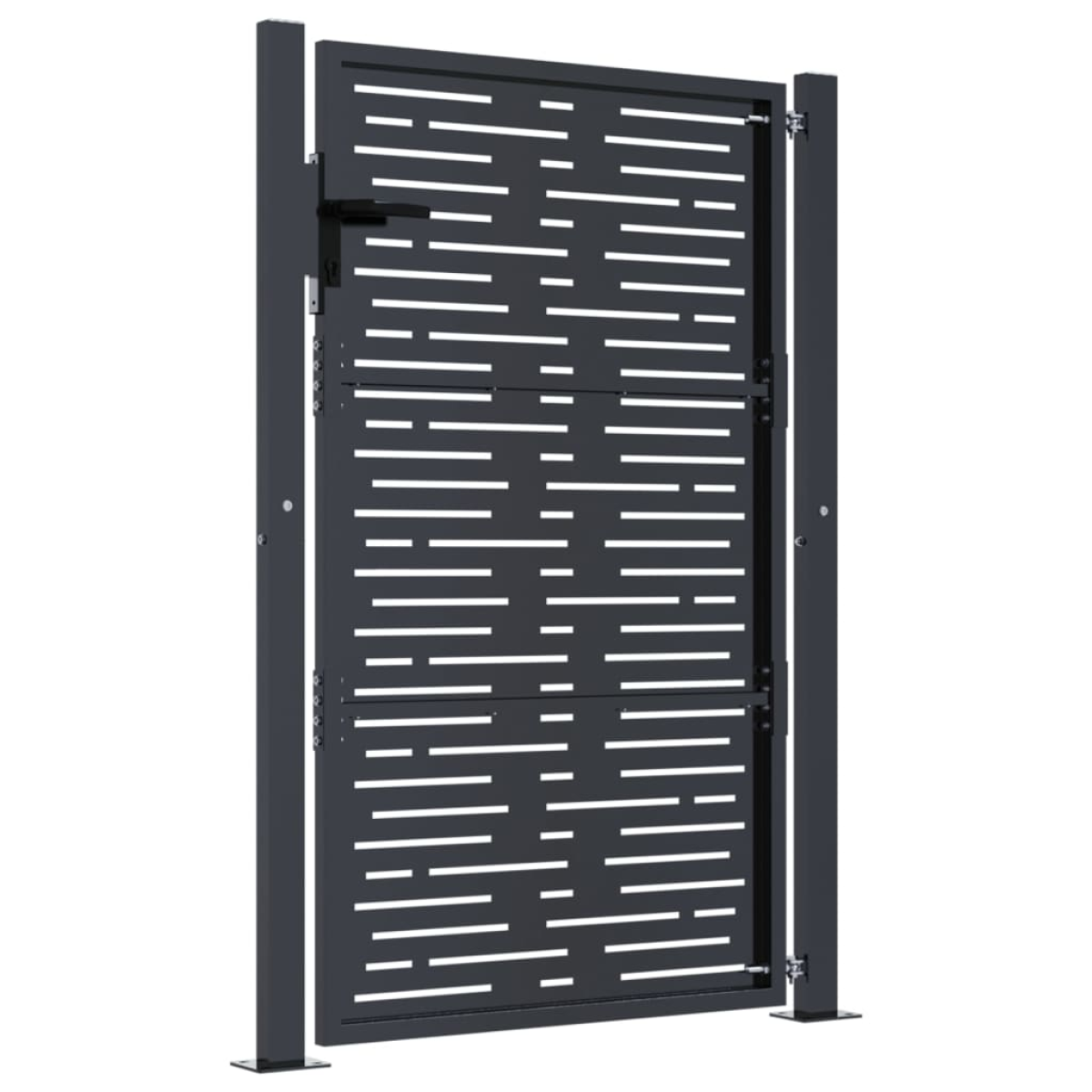 This garden gate, featuring a perfect combination of strength and elegance, makes an ideal entry point for the fence around your garden or patio. Durable material: Steel is an exceptionally hard and strong material. It offers sturdiness and stability. Galvanisation provides better protection against corrosion and is useful for products that'll be used outdoors as well as in harsh environments. And the powder coating on steel creates a protective layer against wear and tear.Laser-cut design: The side gate has a beautiful laser-cut design that adds a special charm to your home.Lockable system: The steel gate is equipped with a lockable system for extra security.Stable base: The 4 mounting holes in the base of the gate post allow you to fix it to the ground for added stability. Good to know:This product should be assembled.