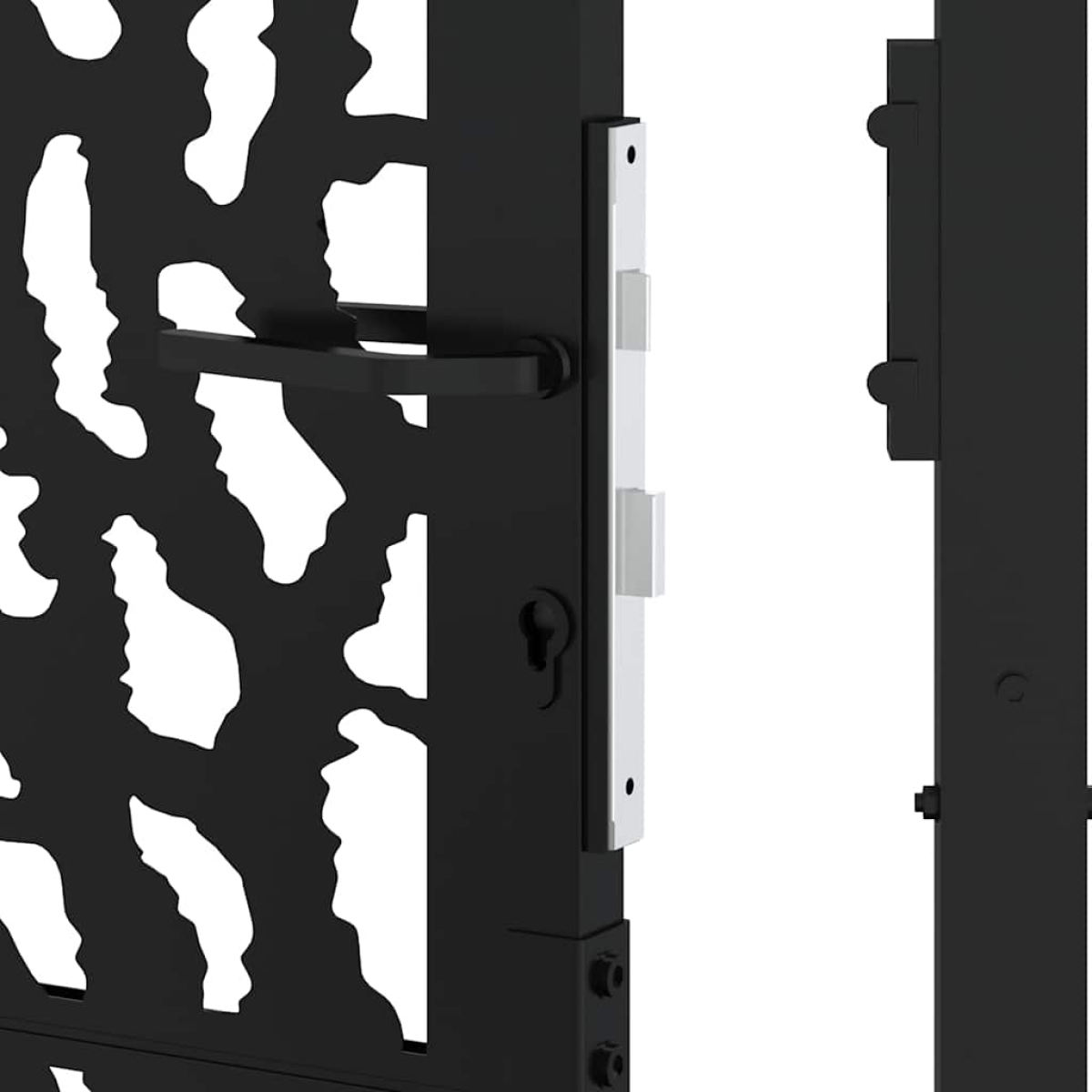 This garden gate, featuring a perfect combination of strength and elegance, makes an ideal entry point for the fence around your garden or patio. Durable material: Steel is an exceptionally hard and strong material. It offers sturdiness and stability. Galvanisation provides better protection against corrosion and is useful for products that'll be used outdoors as well as in harsh environments. And the powder coating on steel creates a protective layer against wear and tear.Laser-cut design: The security gate has a beautiful laser-cut design that adds a unique charm to your home.Lockable design: The outdoor gate is equipped with a robust locking system that comes with three matching keys, guaranteeing that the patio gate can be securely locked.Easy to assemble: The entrance gate comes complete with two posts with flange plates and mounting accessories for easy installation.Wide applications: The metal gate is perfect for enhancing garden entrances, driveways, and any property boundaries, combining functionality and visual appeal.