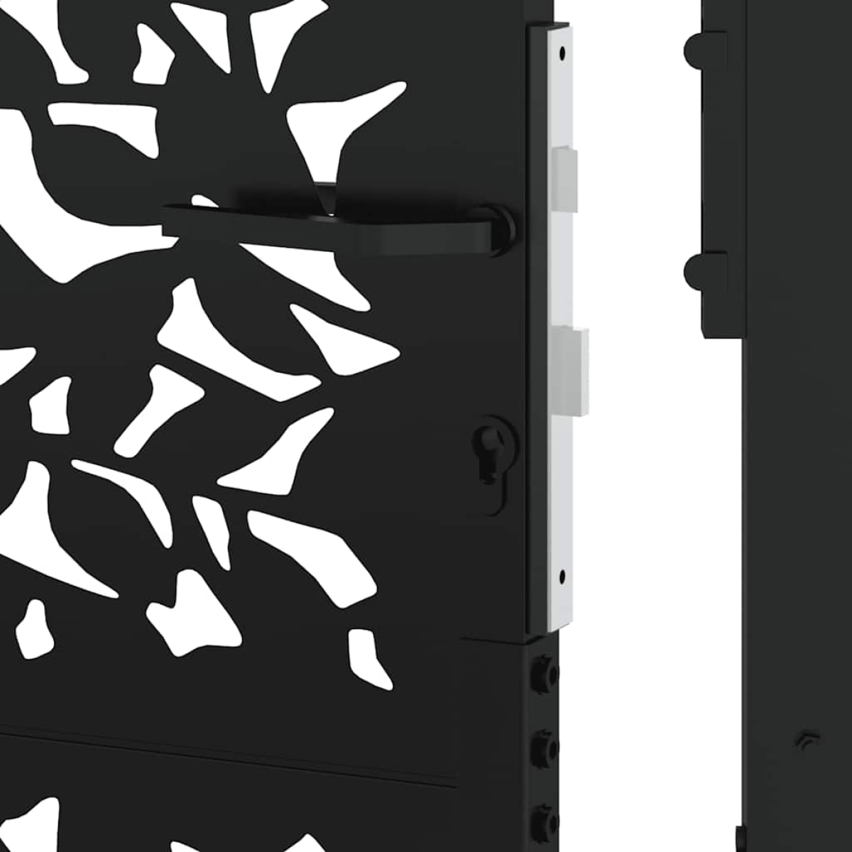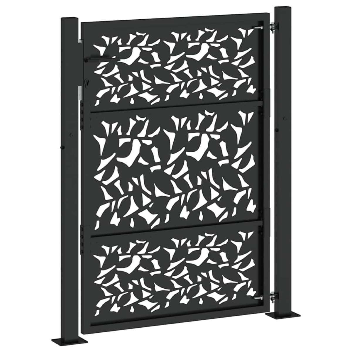 This garden gate, featuring a perfect combination of strength and elegance, makes an ideal entry point for the fence around your garden or patio. Durable material: Steel is an exceptionally hard and strong material. It offers sturdiness and stability. Galvanisation provides better protection against corrosion and is useful for products that'll be used outdoors as well as in harsh environments. And the powder coating on steel creates a protective layer against wear and tear.Laser-cut design: The security gate has a beautiful laser-cut design that adds a unique charm to your home.Lockable design: The outdoor gate is equipped with a robust locking system that comes with three matching keys, guaranteeing that the patio gate can be securely locked.Easy to assemble: The entrance gate comes complete with two posts with flange plates and mounting accessories for easy installation.Wide applications: The metal gate is perfect for enhancing garden entrances, driveways, and any property boundaries, combining functionality and visual appeal.