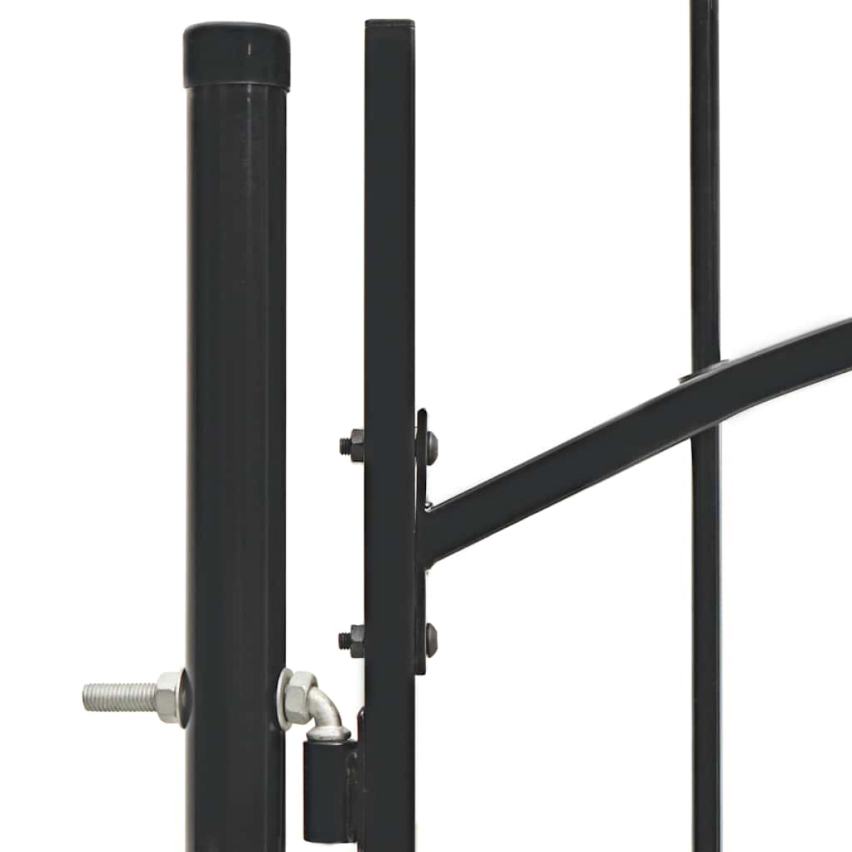 This garden gate will make a contemporarily stylish, practical entryway to seclude your garden from the outside world. Highly stable and durable, the fence gate will form a practical security barrier for your garden, patio or terrace. Thanks to its elegant, arched top design and strong horizontal braces to reinforce the frame, our garden gate will provide a high degree of security, while forming a fabulous entryway onto your property. Manufactured from heavy-duty steel, the gate is powder coated against rust and corrosion. This fence gate is equipped with a locking system and comes with two solid posts along with sturdy hinges for easy installation. This garden gate is an excellent combination of style, strength, stability!