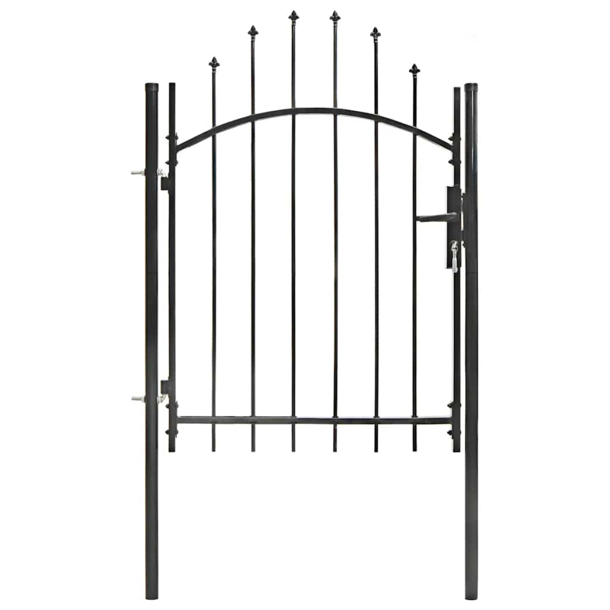 This garden gate will make a contemporarily stylish, practical entryway to seclude your garden from the outside world. Highly stable and durable, the fence gate will form a practical security barrier for your garden, patio or terrace. Thanks to its elegant, arched top design and strong horizontal braces to reinforce the frame, our garden gate will provide a high degree of security, while forming a fabulous entryway onto your property. Manufactured from heavy-duty steel, the gate is powder coated against rust and corrosion. This fence gate is equipped with a locking system and comes with two solid posts along with sturdy hinges for easy installation. This garden gate is an excellent combination of style, strength, stability!