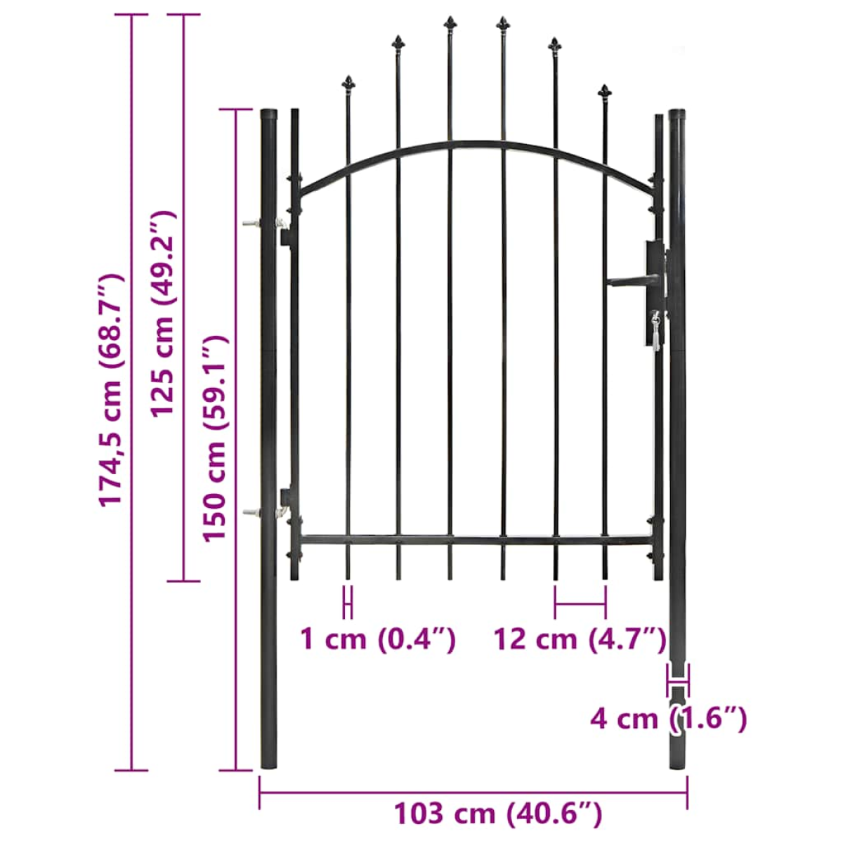 vidaXL Garden Gate Steel 1x1.75 m Black