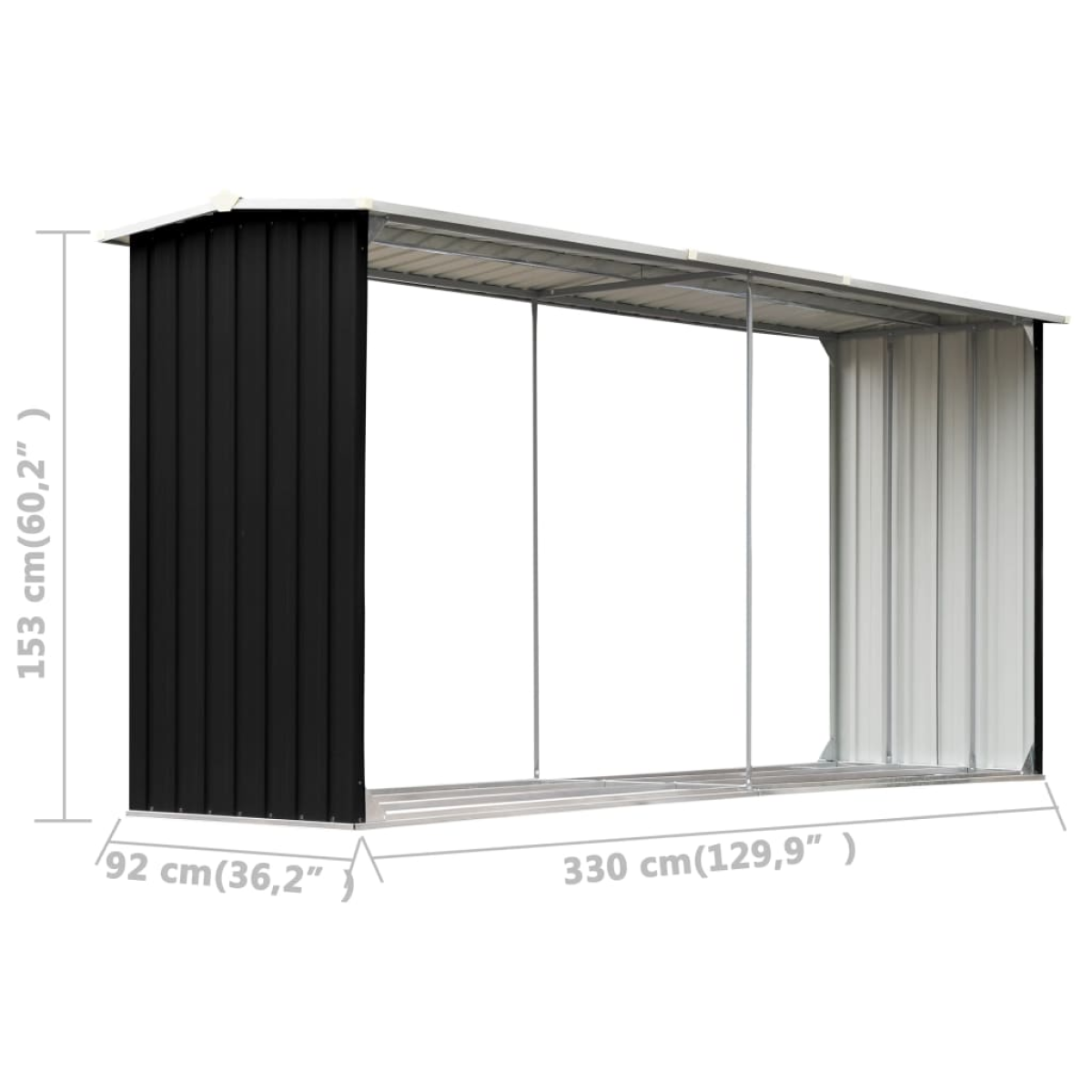 vidaXL Garden Log Storage Shed Galvanised Steel 330x92x153 cm Anthracite