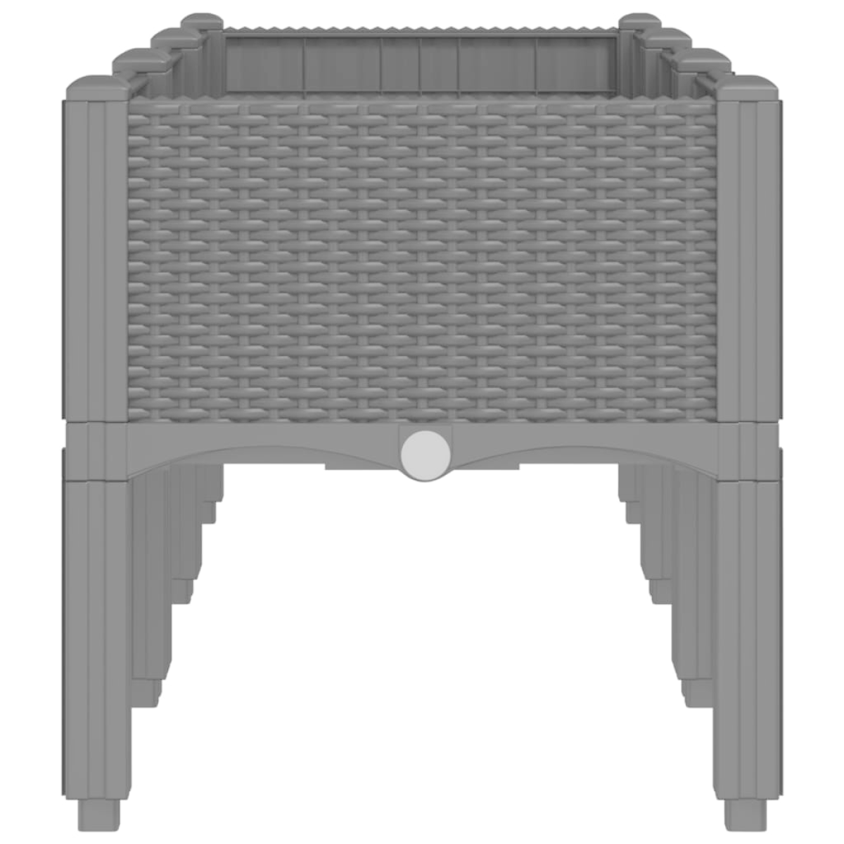 This garden planter is an excellent choice for climbing plants in your garden, patio and terrace. Durable material: Polypropylene is a popular plastic that is also one of the most used materials in outdoor furniture. It's lightweight, tough, and resistant to impact.Generous capacity: The outdoor planter provides plenty of space for growing all your vegetables, flowers and other plants.Bottom design: The ideal bottom layer helps retain moisture and allows for easy drainage.Beautiful rattan look: The patio planter is designed with a rattan look, bringing an elegant charm to your living space.Elevated design: The elevated design of this planter box can protect your plants from weeds and pests.