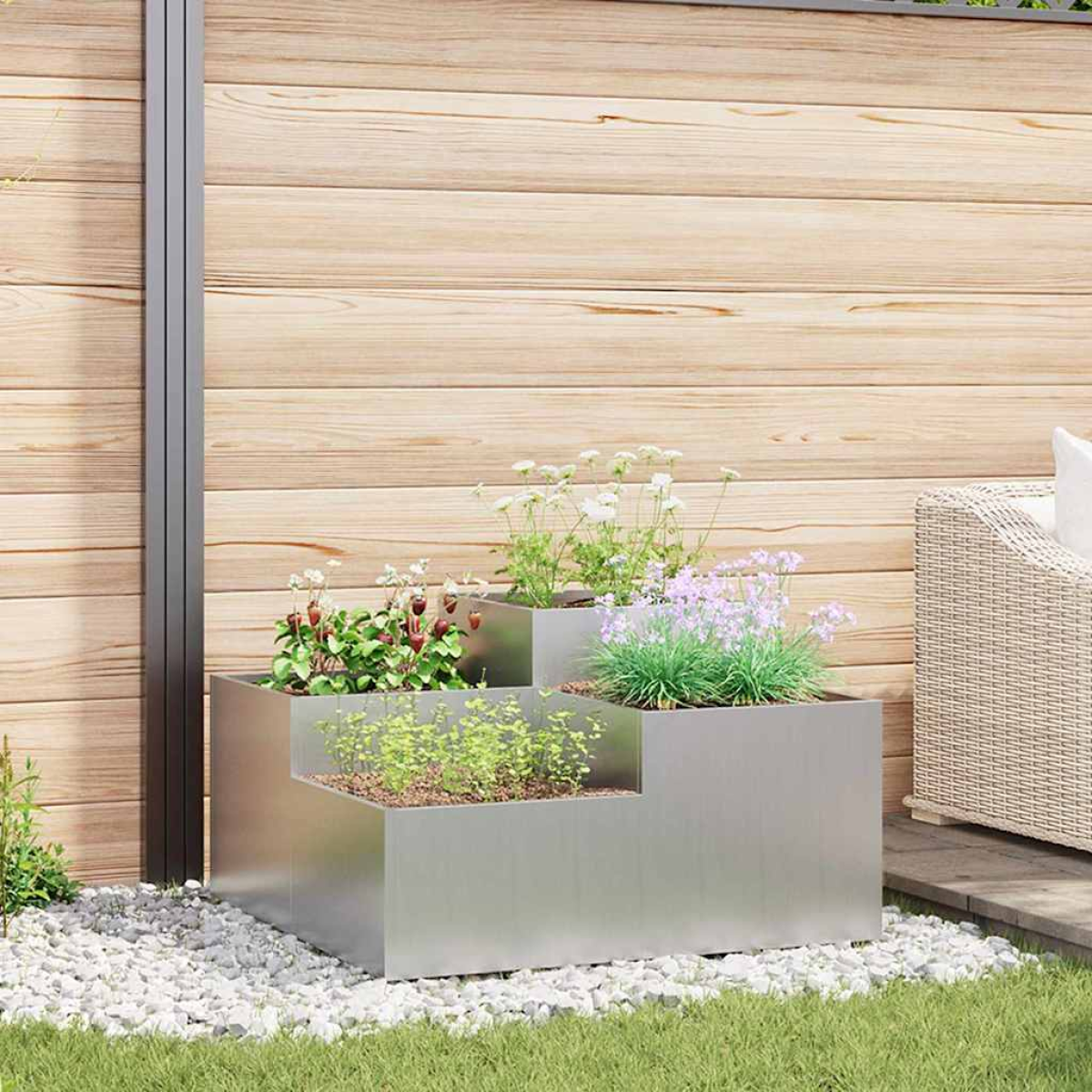 This modern metal garden planter is all about simplicity and practicality, making it a classy option for plant lovers. With its smooth, opaque rectangular shape, it gives off a sophisticated vibe that fits right in with modern garden and terrace styles. Ideal for outdoor spaces, this planter is perfect for anyone wanting to jazz up their garden with a stylish yet functional planting choice. Materials: Made from tough metals, this garden planter stands up to the elements, giving you a long-lasting home for your outdoor plants. Its UV-resistant qualities shield the planter and its plants from sun damage, keeping your garden vibrant all year round. Included Components: It comes as one sleek rectangular planter, designed to easily fit into any outdoor spot. Plus, it has clear assembly instructions—you only need a screwdriver and one person to get it ready, so anyone can handle it. Features / Function / Design: The open bottom lets roots grow naturally and drains well, which means healthier plants. Its modern design boasts clean lines and minimal decoration, giving a fresh touch to your outdoor area, perfect for both gardens and terraces. Recommended Uses: Designed for outdoor use, this planter spruces up terraces, gardens, and other outside areas. It has a flexible style that works well with different looks, letting you create lovely displays of flowers, herbs, or stylish grasses. Care & Maintenance: You just need to assemble it according to the instructions. For upkeep, make sure to place it right for happy plants, and its UV-resistant finish makes it a breeze to care for so you can enjoy it for years.