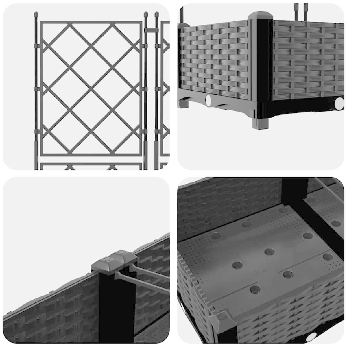 Check out this modern garden planter with a trellis! It really bumps up both how useful it is and how it looks in any outdoor spot. Its sleek rectangular shape mixes a contemporary vibe with practical use, and the matte finish goes perfectly with the simplicity of modern design. It’s just right for keen gardeners or anyone sprucing up their home, showcasing bright plants against its non-reflective backdrop, adding some pizzazz to your garden or terrace. Sturdy Material: Built from high-quality polypropylene, this planter is made to brave the elements. It's UV resistant too, so your greens stay vibrant through sunny spells. Perfect for outdoor lovers, this tough material keeps its strength season after season. Integrated Trellis: The trellis supports climbing plants, making the most of vertical space and enhancing your garden's look. Whether you’re growing colourful vines or showcasing nature’s gifts, the trellis combines beauty with practicality, sparking creativity and making the most of your green space. Accessible Assembly: Putting it together is a doddle and only needs a screwdriver and a mate. Get your décor ideas up and running quickly, changing your garden with ease. Simple instructions mean you can spend more time enjoying your leafy haven. Functional Style: The rectangular design fits perfectly in modern spaces, blending in beautifully with contemporary tastes. Made for outdoor use, it adds a touch of subtle elegance, focusing on clean lines and minimal decoration that complements your lush surroundings. Low Maintenance: Keeping it in top shape is easy — just a damp cloth will do! This low-maintenance design suits busy lives, offering long-lasting enjoyment without the hassle of excessive upkeep.