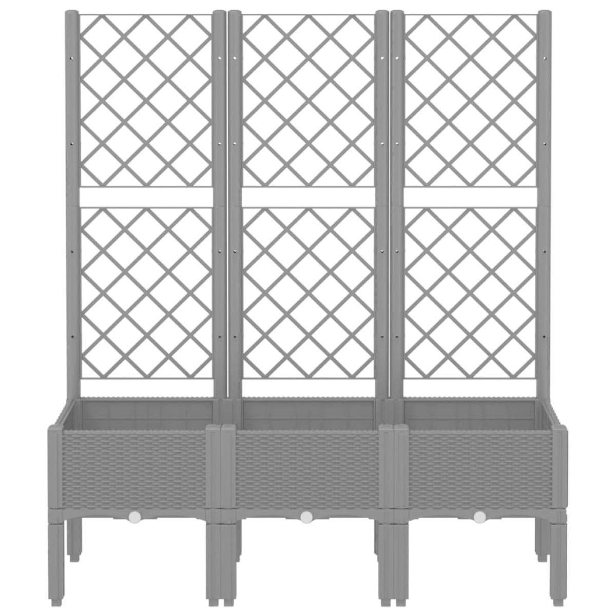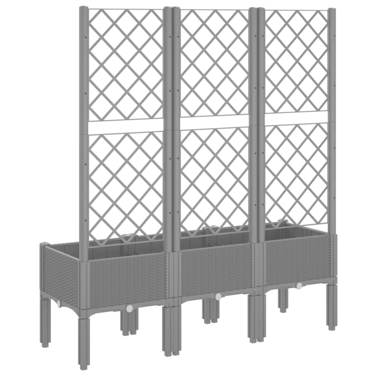 This garden planter with trellis is an excellent choice for climbing plants in your garden, patio and terrace. Durable material: Polypropylene is a popular plastic that is also one of the most used materials in outdoor furniture. It's lightweight, tough, and resistant to impact.Generous capacity: The outdoor planter provides plenty of space for growing all your vegetables, flowers and other plants.Practical design: The ideal bottom layer helps retain moisture and allows for easy drainage. Additionally, the integrated trellis offers great support for growing climbing plants such as tomatoes, peas, and roses.Beautiful rattan look: The patio planter is designed with a rattan look, bringing an elegant charm to your living space.Elevated design: The elevated design of this planter box can protect your plants from weeds and pests.