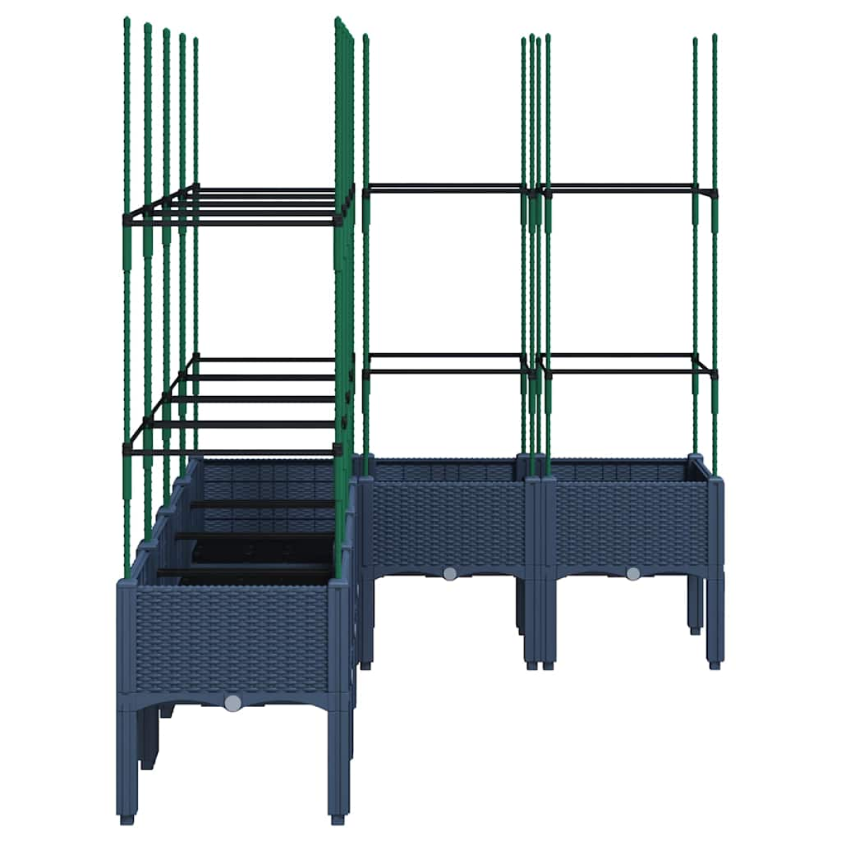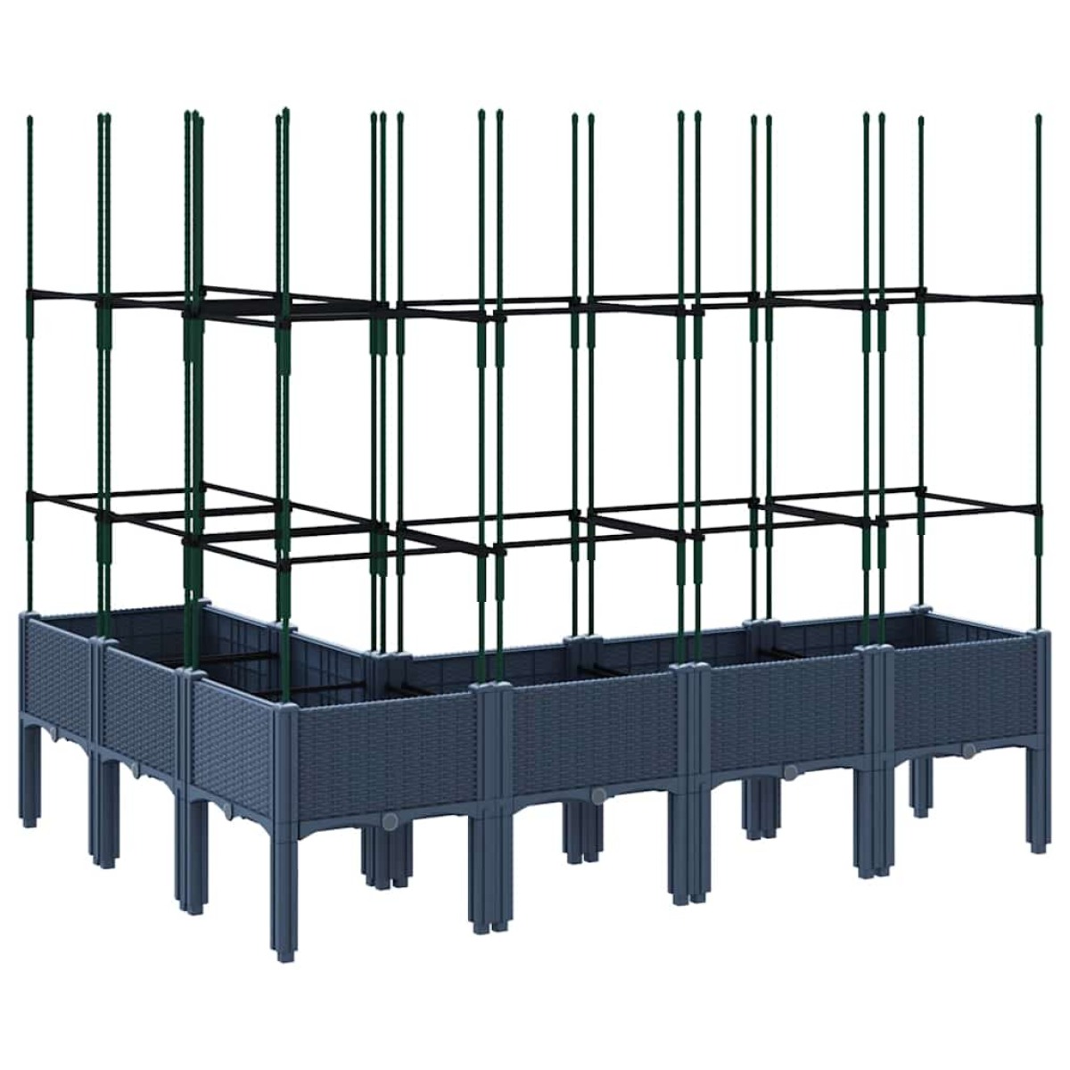 This garden planter with trellis is an excellent choice for climbing plants in your garden, patio and terrace. Durable material: Polypropylene is a popular plastic that is also one of the most used materials in outdoor furniture. It's lightweight, tough, and resistant to impact.Generous capacity: The outdoor planter provides plenty of space for growing all your vegetables, flowers and other plants.Practical design: The ideal bottom layer helps retain moisture and allows for easy drainage. Additionally, the integrated trellis offers great support for growing climbing plants such as tomatoes, peas, and roses.Beautiful rattan look: The patio planter is designed with a rattan look, bringing an elegant charm to your living space.Elevated design: The elevated design of this planter box can protect your plants from weeds and pests.