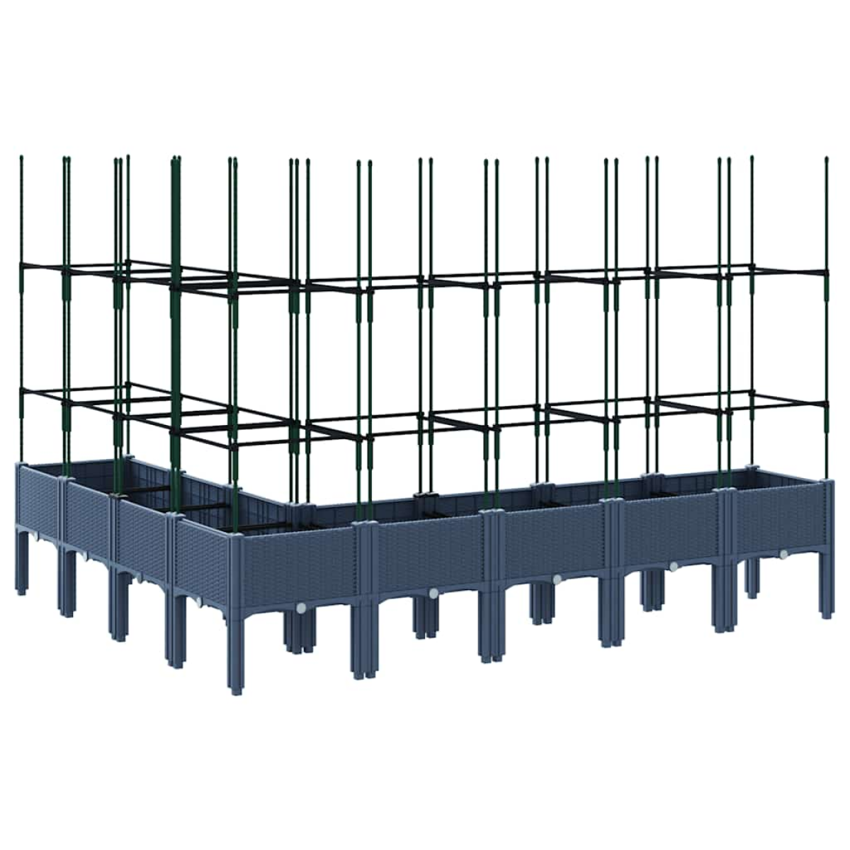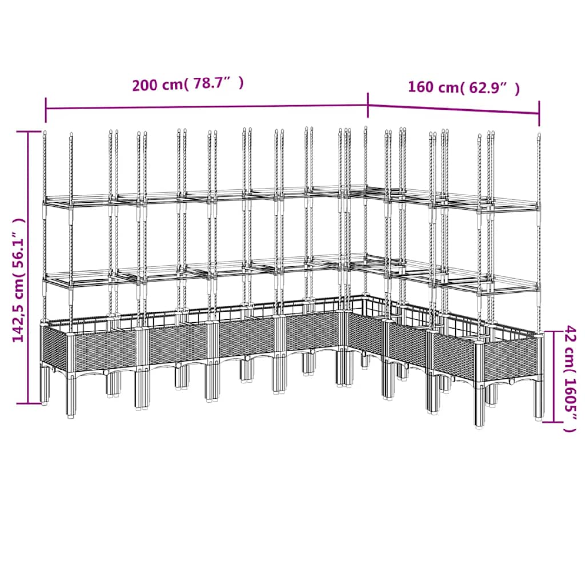 This garden planter with trellis is an excellent choice for climbing plants in your garden, patio and terrace. Durable material: Polypropylene is a popular plastic that is also one of the most used materials in outdoor furniture. It's lightweight, tough, and resistant to impact.Generous capacity: The outdoor planter provides plenty of space for growing all your vegetables, flowers and other plants.Practical design: The ideal bottom layer helps retain moisture and allows for easy drainage. Additionally, the integrated trellis offers great support for growing climbing plants such as tomatoes, peas, and roses.Beautiful rattan look: The patio planter is designed with a rattan look, bringing an elegant charm to your living space.Elevated design: The elevated design of this planter box can protect your plants from weeds and pests.