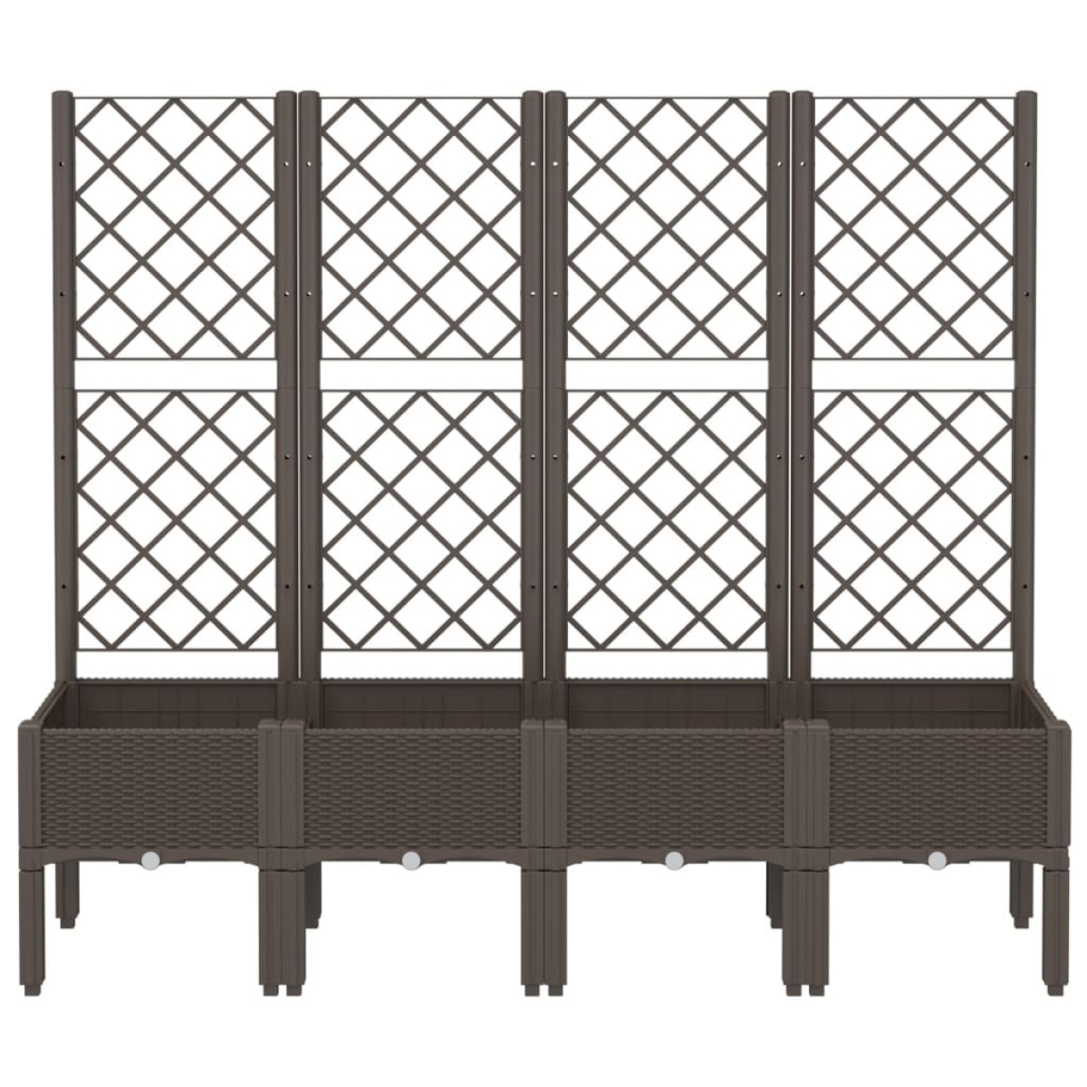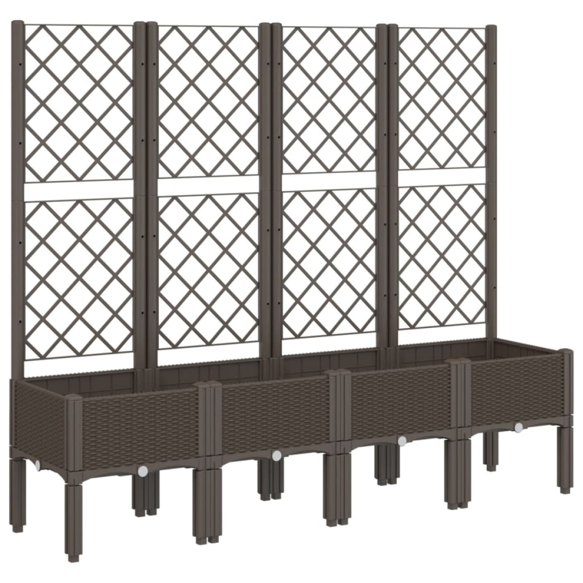 This garden planter with trellis is an excellent choice for climbing plants in your garden, patio and terrace. Durable material: Polypropylene is a popular plastic that is also one of the most used materials in outdoor furniture. It's lightweight, tough, and resistant to impact.Generous capacity: The outdoor planter provides plenty of space for growing all your vegetables, flowers and other plants.Practical design: The ideal bottom layer helps retain moisture and allows for easy drainage. Additionally, the integrated trellis offers great support for growing climbing plants such as tomatoes, peas, and roses.Beautiful rattan look: The patio planter is designed with a rattan look, bringing an elegant charm to your living space.Elevated design: The elevated design of this planter box can protect your plants from weeds and pests.
