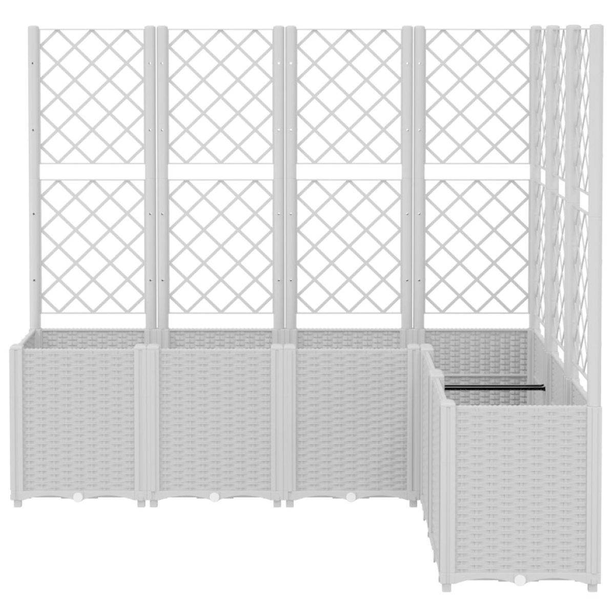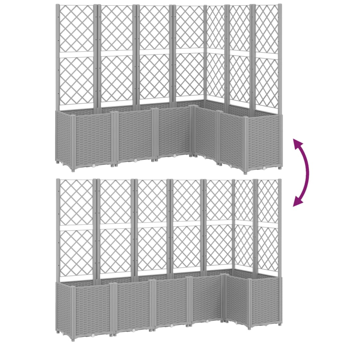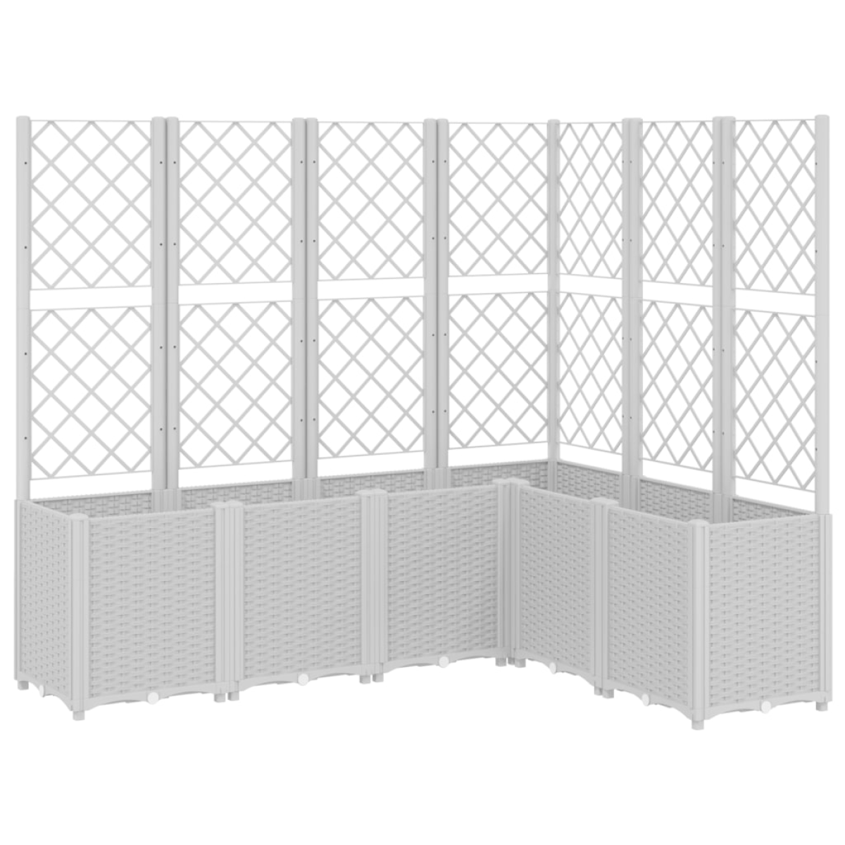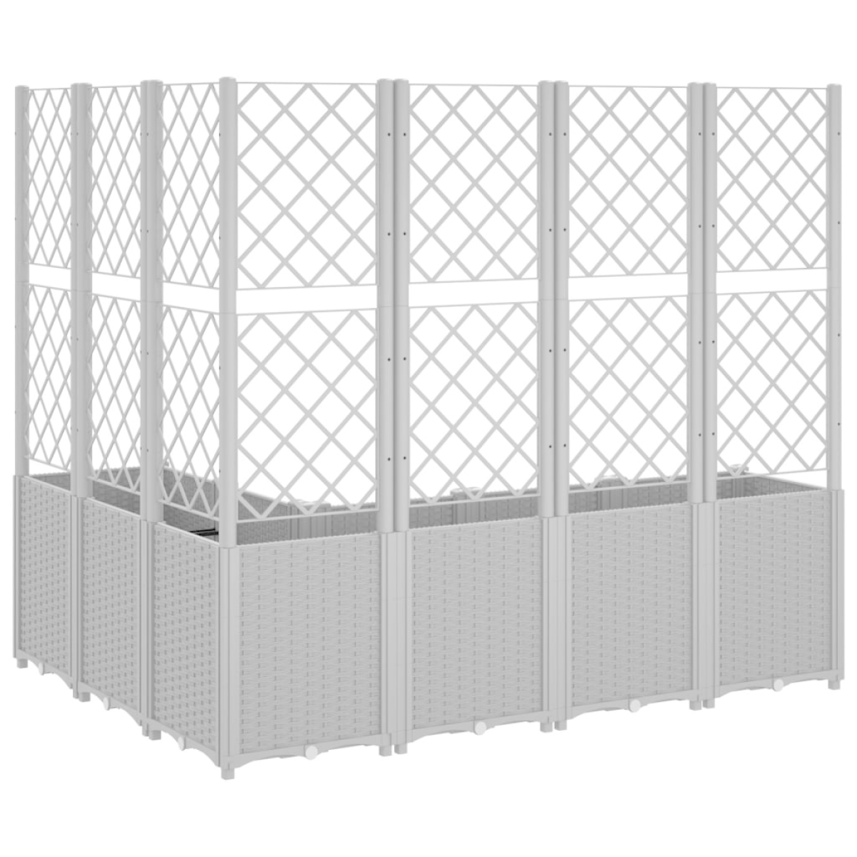 This garden planter with trellis is an excellent choice for climbing plants in your garden, patio and terrace. Durable material: Polypropylene is a popular plastic that is also one of the most used materials in outdoor furniture. It's lightweight, tough, and resistant to impact.Generous capacity: The outdoor planter provides plenty of space for growing all your vegetables, flowers and other plants.Practical design: The ideal bottom layer helps retain moisture and allows for easy drainage. Additionally, the integrated trellis offers great support for growing climbing plants such as tomatoes, peas, and roses.Modular design: This planter consists of 6 flower boxes that can be freely combined according to your needs.Beautiful rattan look: The patio planter is designed with a rattan look, bringing an elegant charm to your living space.