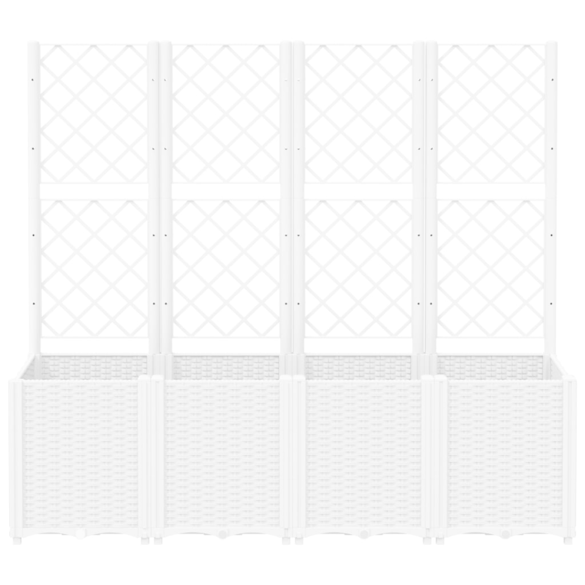 This garden planter with trellis is an excellent choice for climbing plants in your garden, patio and terrace. Durable material: Polypropylene is a popular plastic that is also one of the most used materials in outdoor furniture. It's lightweight, tough, and resistant to impact.Generous capacity: The outdoor planter provides plenty of space for growing all your vegetables, flowers and other plants.Practical design: The ideal bottom layer helps retain moisture and allows for easy drainage. Additionally, the integrated trellis offers great support for growing climbing plants such as tomatoes, peas, and roses.Modular design: This planter consists of 4 flower boxes that can be freely combined according to your needs.Beautiful rattan look: The patio planter is designed with a rattan look, bringing an elegant charm to your living space.