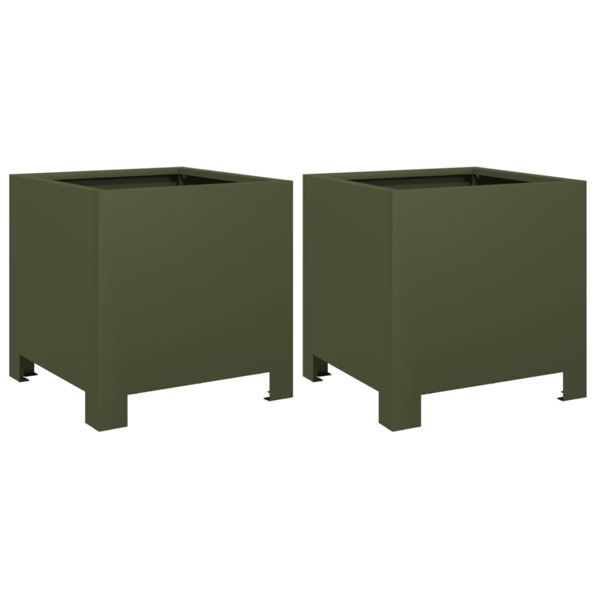 vidaXL Garden Planters 2 pcs Olive Green 30x30x30 cm Steel