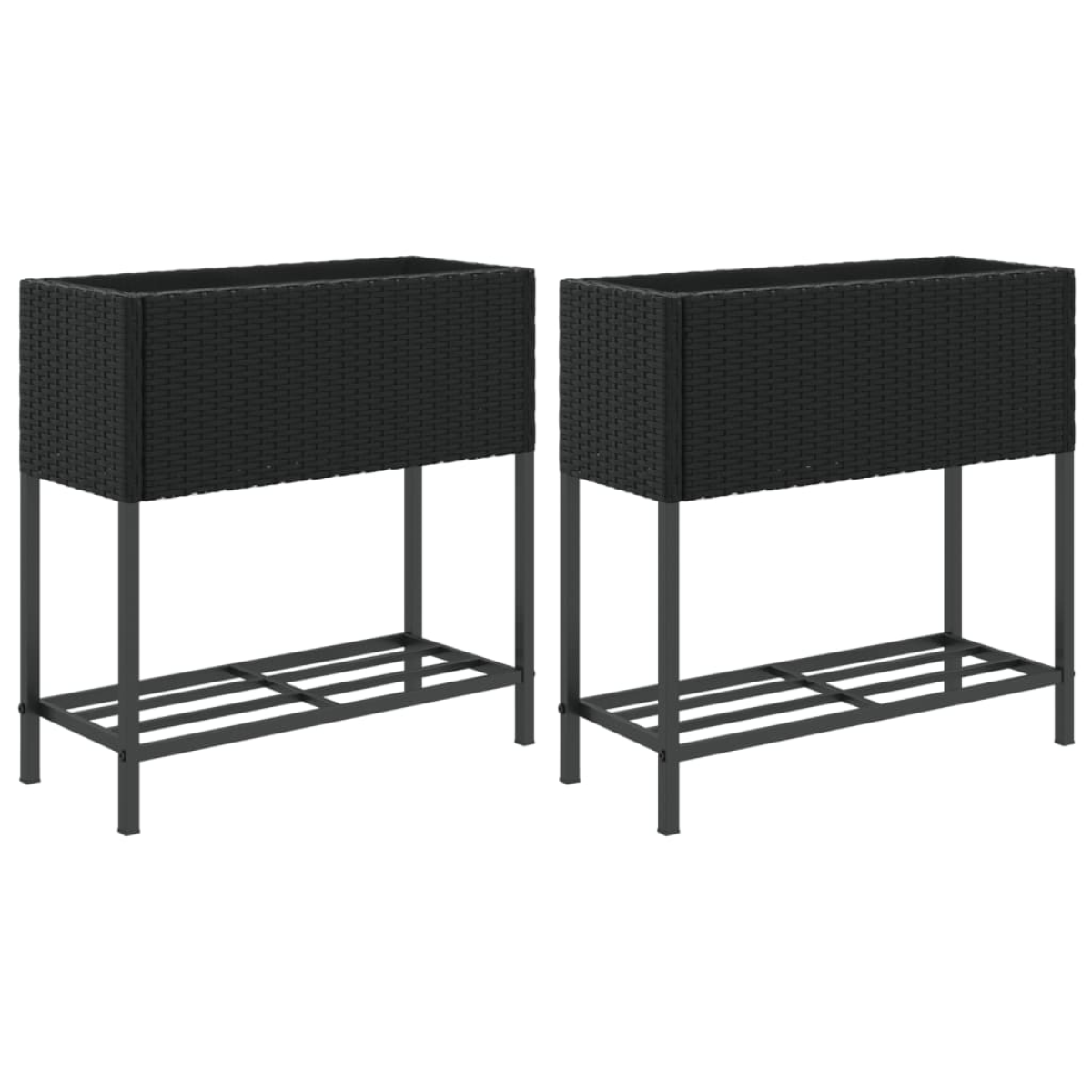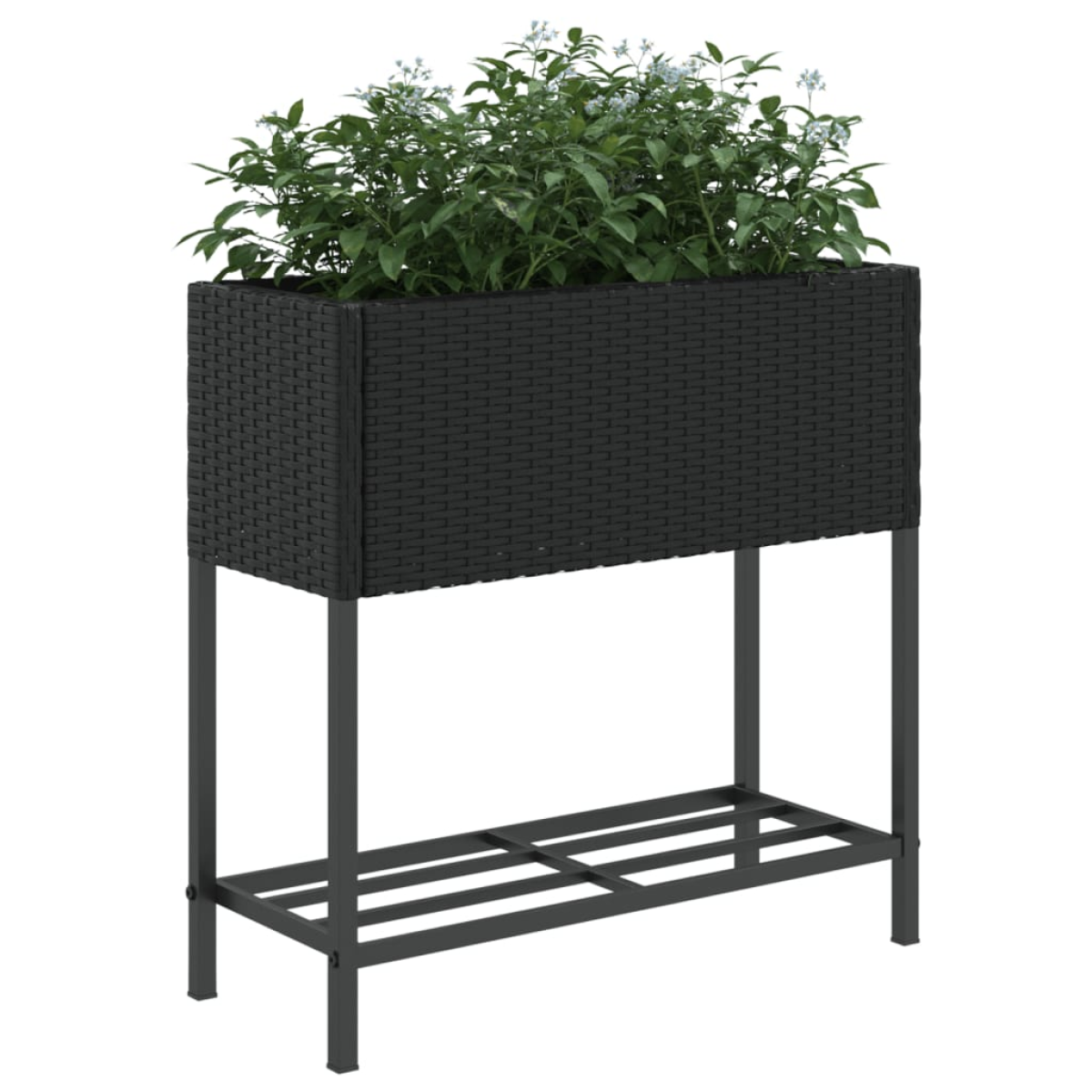 These garden planters are an ideal choice for growing a variety of flowers or plants. Durable material: PE rattan, also known as poly rattan, is a strong, low-maintenance synthetic material that looks like natural rattan. It's lightweight, easy to clean, and commonly used for outdoor furniture due to its durability and weather-resistant properties.Robust and stable frame: The powder-coated steel frame is strong, stable, durable, and resistant to corrosion and harsh weather, ensuring long-lasting performance.Two ways of using: You can use the non-woven bag as a liner and fill the planter with soil or you can just put flowerpots inside.Practical shelf: The garden planter is designed with a shelf, allowing you to store potting soil and plant accessories within easy reach. In addition, the shelf prevents water, grass and dirt from the ground from touching the raised veg planter to keep it clean and beautiful.Decorative function: The flower box can hold your favourite plants or flowers, which is ideal for your garden as decoration.