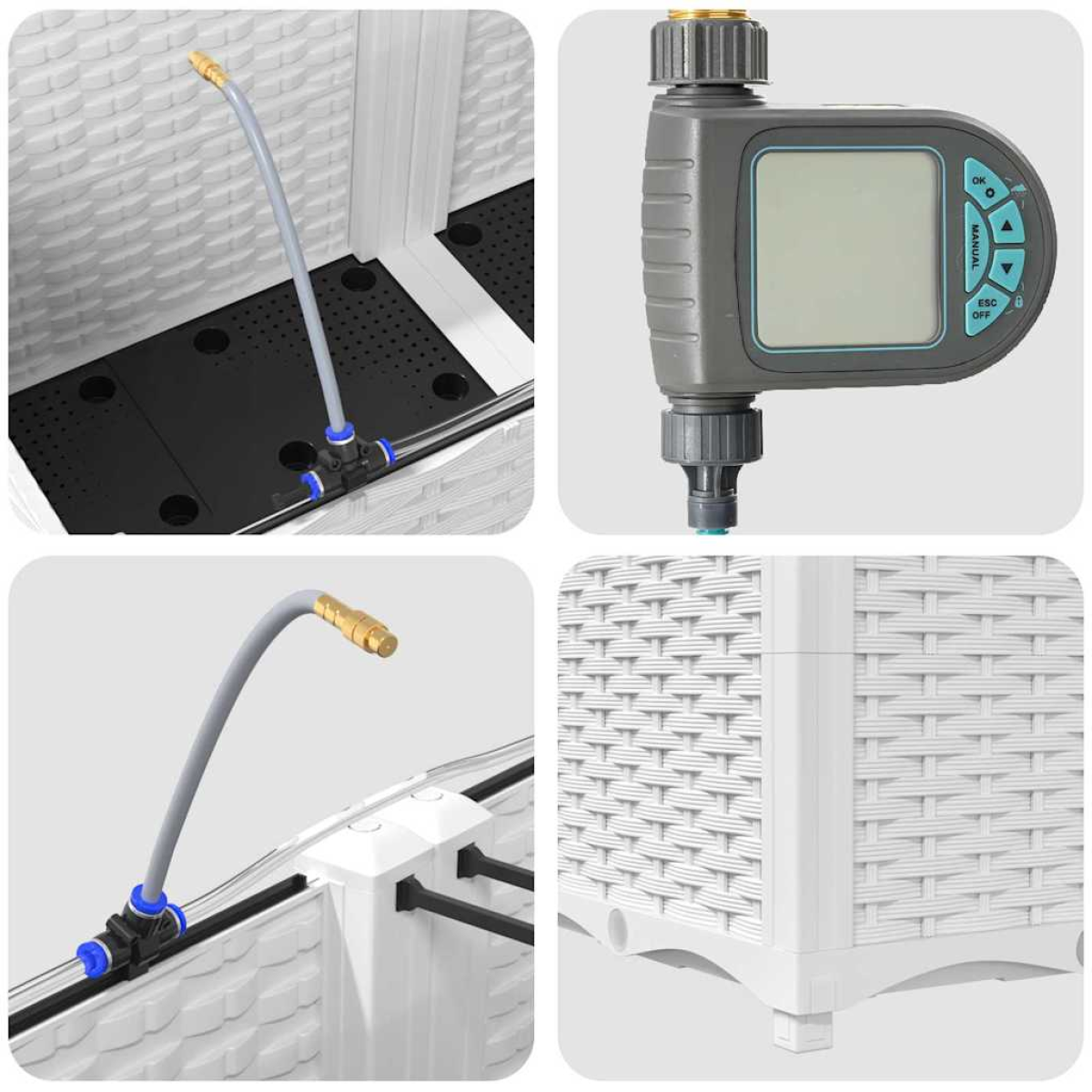 This planter box is a great all-rounder for outdoor gardening. It has a cool, modern style with a simple and clean look, making it a lovely addition to any garden or terrace. Whether you're sprucing up your patio with bright flowers or growing herbs for cooking, this planter will boost the charm of your outdoor space. Thanks to its sturdy build and practical design, it promises a long-lasting gardening experience. Sleek Modern Style This planter box has a simple and functional design. Its clean lines and minimal embellishments fit perfectly with any garden or terrace style, adding a touch of elegance to your outdoor space. UV Resistant Construction Made from UV-resistant steel, it promises to stand up to the sun. This strong material keeps the planter looking great and helps it last season after season, ensuring a trustworthy home for your plants. Built-in Irrigation System Enjoy an integrated watering system that makes taking care of your plants a breeze and helps them grow well. This handy feature cuts down on the need for constant watering, so you can relax while your garden thrives. Ample Plant Storage With loads of room, this planter can hold a variety of plants, from showy flowers to tasty herbs. Its spacious design lets you get creative with your garden layout, ensuring every plant has enough space to flourish. Convenient Care Process To keep your planter looking sharp, just wipe it down with a clean cloth to clear off dust. Keep it out of direct sunlight to help it last longer, and make sure everything is securely connected if you need to take it apart or move it—these simple tips will help keep it in great shape over time.