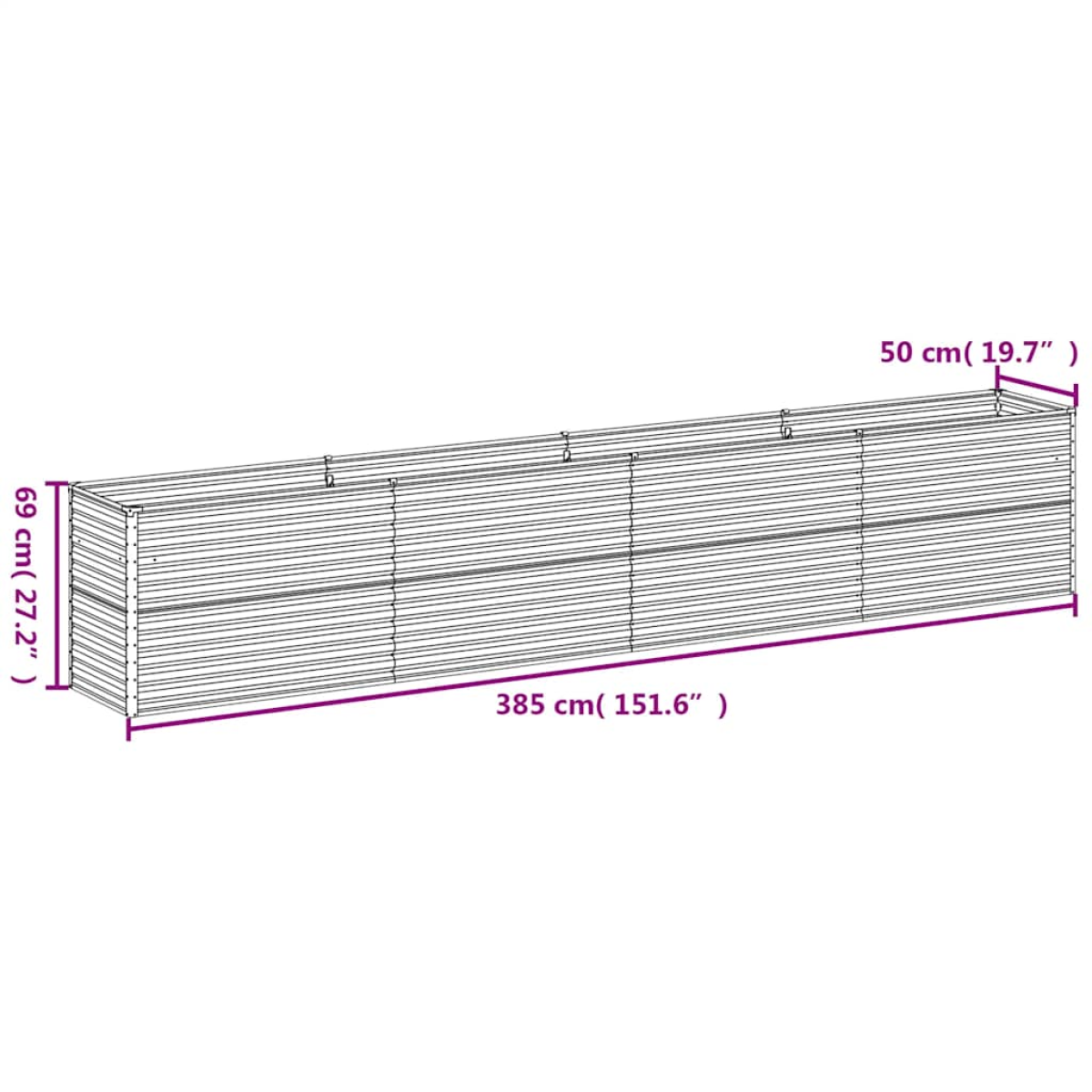 vidaXL Garden Raised Bed 385x50x69 cm Corten Steel