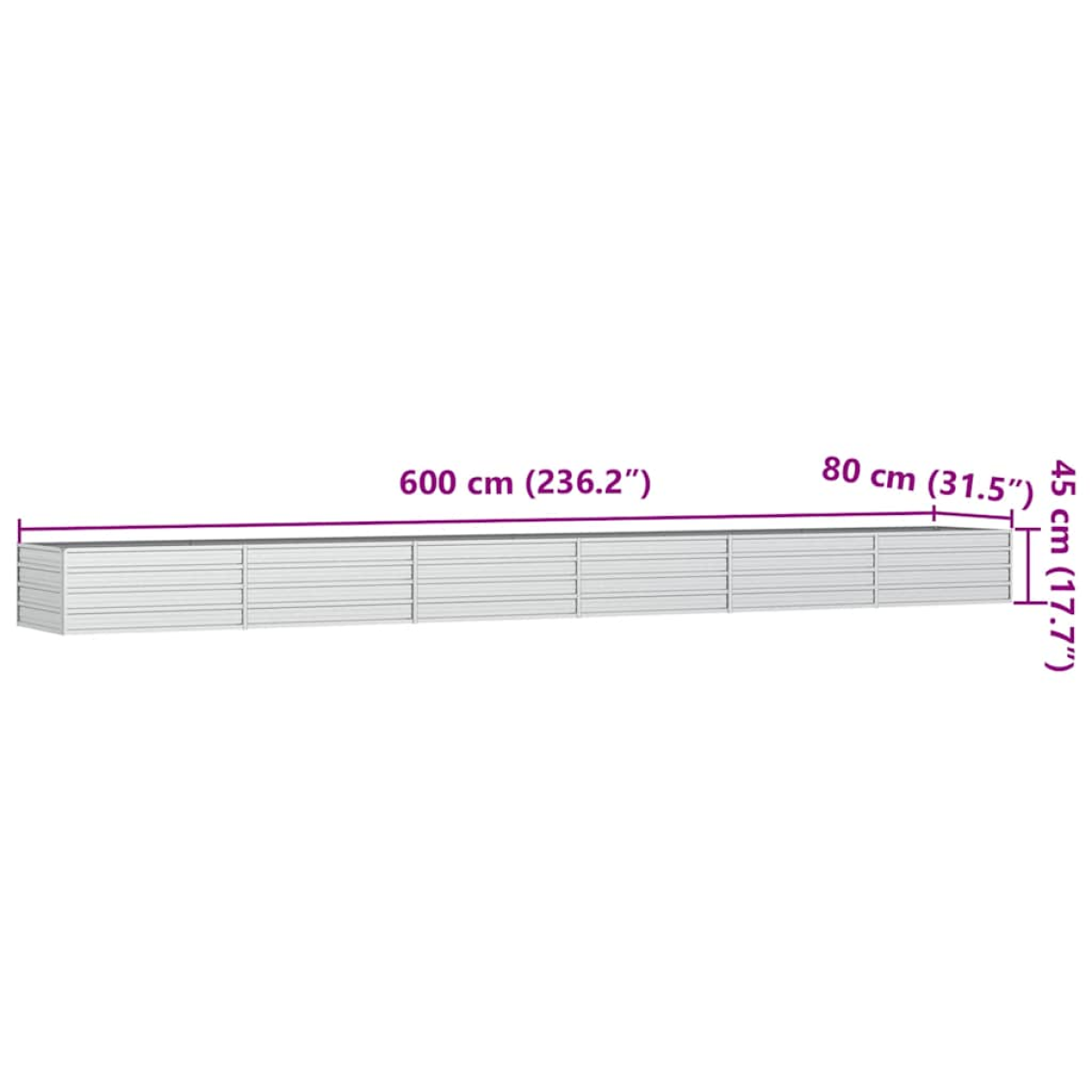 vidaXL Garden Raised Bed 600x80x45 cm Galvanized Steel Silver