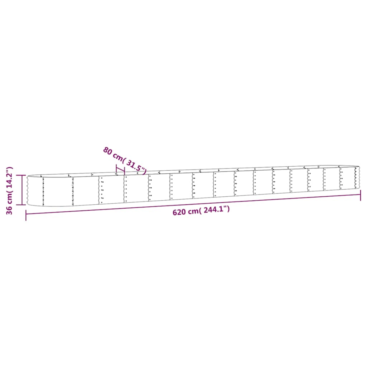 vidaXL Garden Raised Bed Galvanised Steel 620x80x36 cm Anthracite