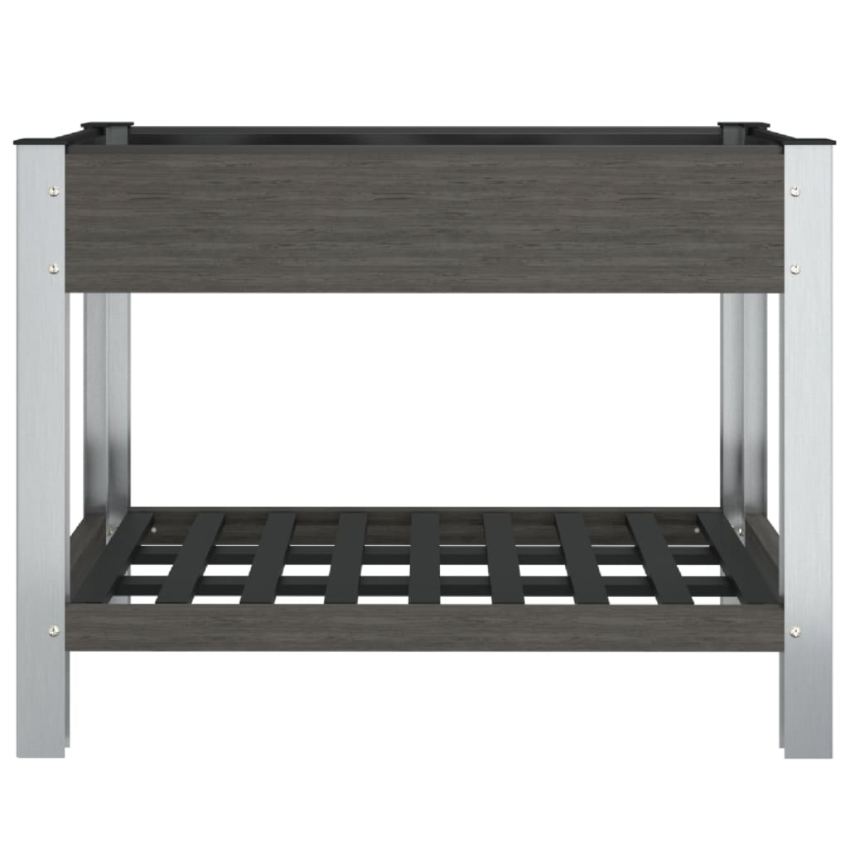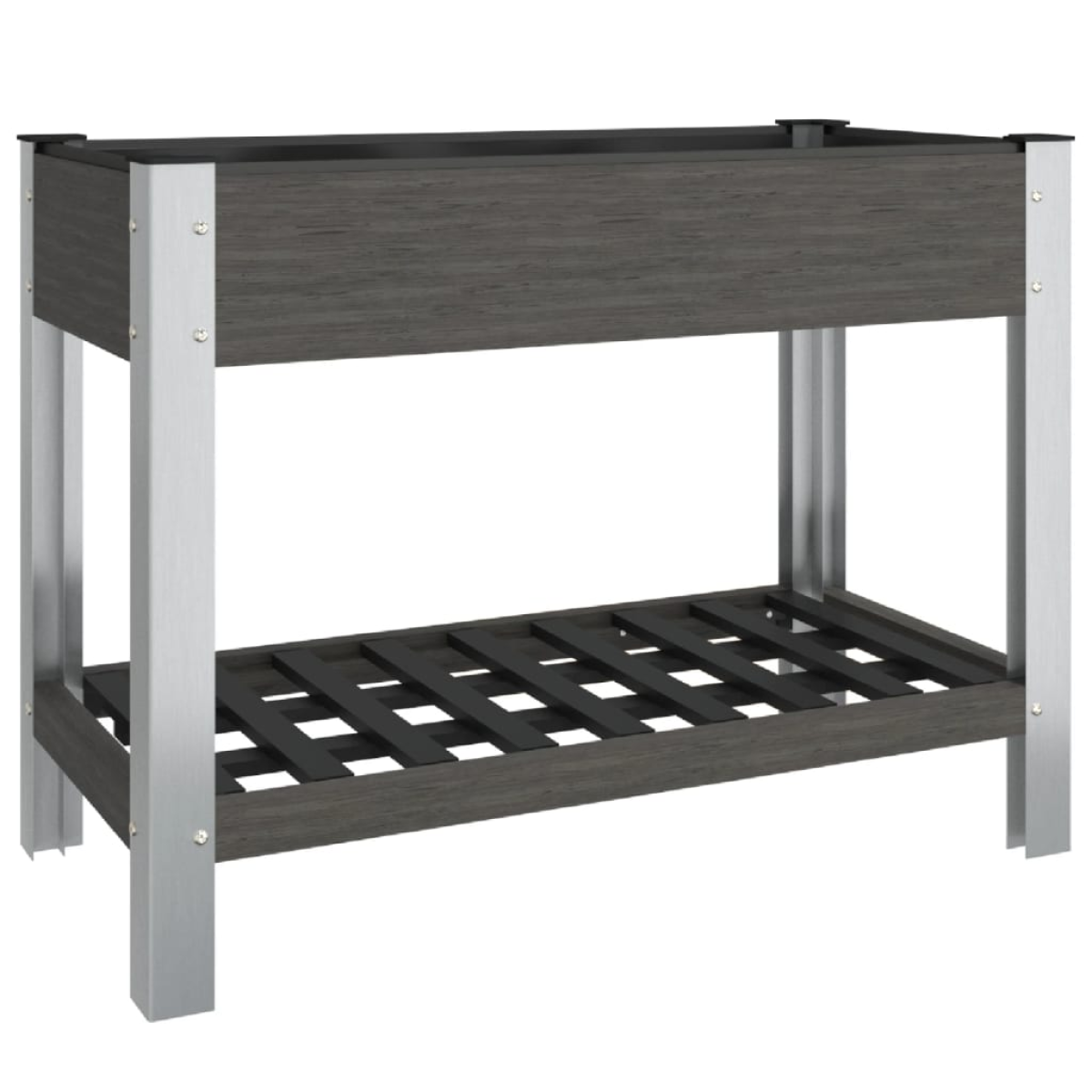 This handy garden raised bed is a great choice for DIY enthusiasts to decorate your gardens, balconies, or patios. Durable material: The planter is made of wood-plastic composite, which makes it durable, weather-resistant as well as suitable for outdoor use.Ample space: The raised bed provides ample space to accommodate a considerable number of plants, vegetables, herbs, and flowers. Additionally, the shelf offers extra storage space for placing various pots and tools.Great ventilation: The garden planter is designed with open bottoms, which promises great ventilation conditions for plants.Sturdy frame: The steel frame of the flower box ensures sturdiness and stability. Note:Each product comes with an assembly manual in the box for easy assembly.