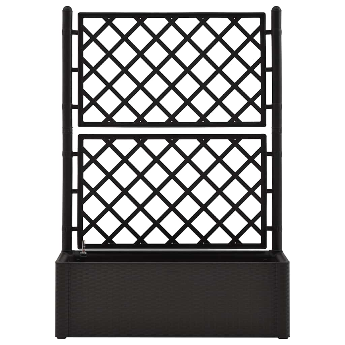 Create a lovely backdrop for your flowers with an elegant, functional and unique self-watering raised bed! This trellis planter has a large flower box that can accommodate a large number of green plants and flowers. The built-in trellis offers excellent support for climbing plants, like herbs, tomatoes, beans, etc. Made of robust UV, weather and frost-resistant plastic, it is suitable for indoor and outdoor use. The design resembles a deceptively real rattan structure. The material is washable and easy to clean. Additionally, this box can automatically water plants by wicking moisture from its 90 L water reservoir and has water overflow holes to prevent overwatering. The level indicator is included.