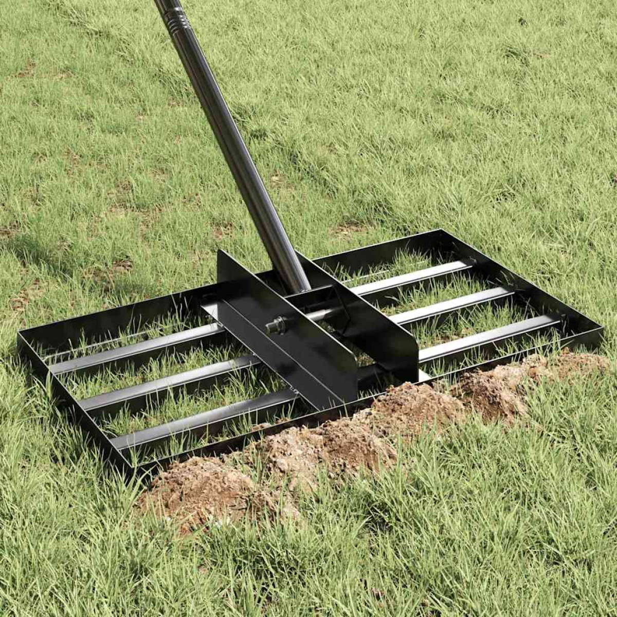 vidaXL Garden Rake Manual Black 45 x 25 x 200 cm Powder-Coated Steel