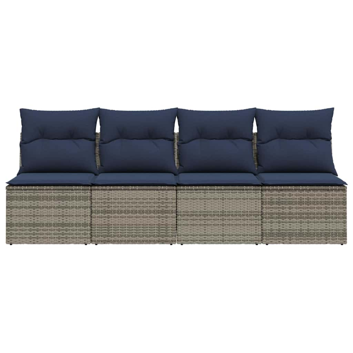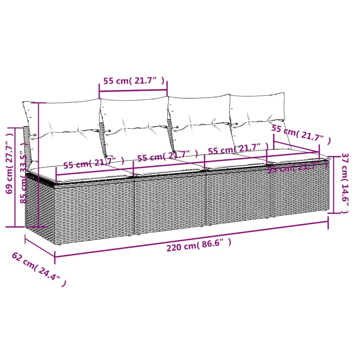 vidaXL Garden Sofa with Cushion Grey 220 x 62 x 69cm Poly Rattan