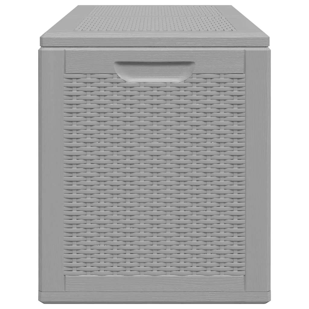 This simple storage box is an excellent solution for decluttering your garden, patio or terrace. The storage chest is made of 100% PP material, making it weather-resistant, UV-resistant, lightweight and easy to move. The garden storage box features an understated yet timeless design and blends perfectly with your indoor and outdoor decor. In addition, the garden storage box offers ample storage space for cushions, pillows, other household or garden items within reach. Note: In order to extend the life of your outdoor furniture, we recommend you to clean it regularly and do not leave it outdoors without protection unnecessarily.Clean: Use a mild soap solution.Storing: If possible, store in a cool, dry place indoors. If the product is stored outdoors, protect it with a waterproof cover. Wipe and dry the excess water or snow from flat surfaces after a rain or snowfall. Allow sufficient air circulation to avoid moisture-related damage.