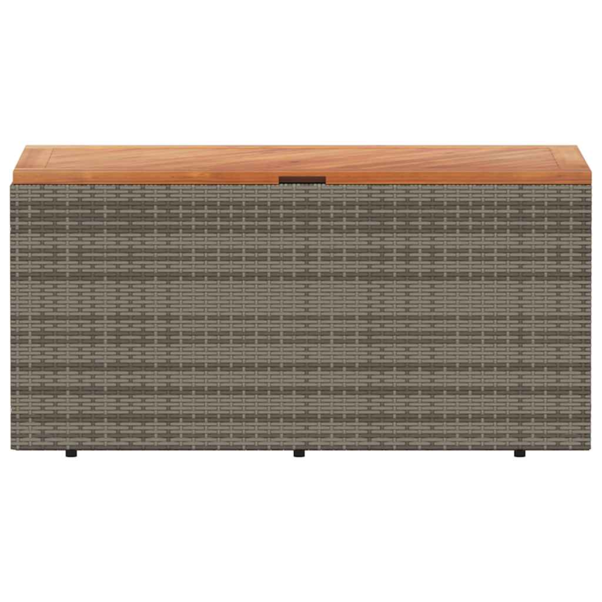 This garden storage box is ideal for storing your cushions, pillows, blankets, toys, and other items in the garden or on the patio. Durable material: PE rattan, also known as poly rattan, is a strong, low-maintenance synthetic material that looks like natural rattan. It's lightweight, easy to clean, and commonly used for outdoor furniture due to its durability and weather-resistant properties.Storage function with water-resistant bag: The garden furniture features storage space under the seat, complete with a water-resistant bag for storing cushions, toys, and other items. The inner bag can be securely fastened to the outdoor furniture with hook-and-loop fasteners for added stability.Versatile functionality: This outdoor furniture serves a dual purpose as a garden storage box and a bench seat.Safe and easy to open and close: The gas spring makes it easy to open the lid and keeps it from slamming shut or trapping fingers.Stable and easy-to-clean tabletop: This patio furniture has an acacia wood top that is sturdy, durable, and easy to clean with a damp cloth. Good to know:To make sure your outdoor furniture stays beautiful, we recommend protecting it with a waterproof cover.