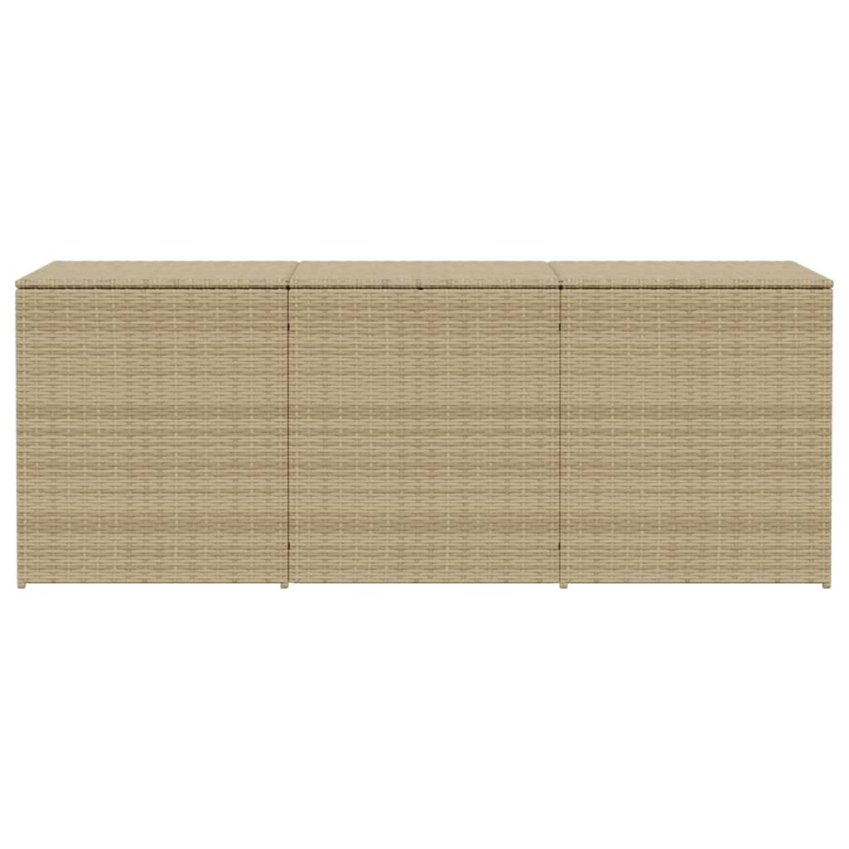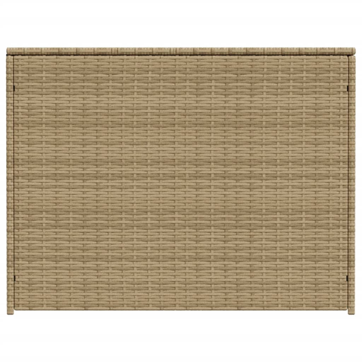 This garden storage box is ideal for storing your cushions, pillows, blankets, and other items in the garden or on the patio. Durable material: PE rattan, also known as poly rattan, is a strong, low-maintenance synthetic material that looks like natural rattan. It's lightweight, easy to clean, and commonly used for outdoor furniture due to its durability and weather-resistant properties.Storage function with water-resistant bag: The garden furniture features a water-resistant bag for storing cushions and other items. The inner bag can be securely fastened to the outdoor furniture with hook-and-loop fasteners for added stability.Safe and easy to open and close: The gas springs make it easy to open the lid and keep it from slamming shut or trapping fingers.Robust and stable frame: The powder-coated steel frame ensures that the garden furniture is strong and stable for daily outdoor use. Good to know:To make sure your outdoor furniture stays beautiful, we recommend protecting it with a waterproof cover.