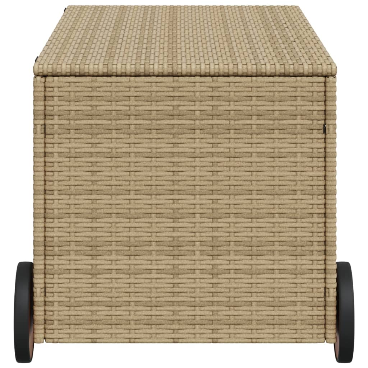This garden storage box is ideal for storing your cushions, pillows, blankets, and other items in the garden or on the patio. Durable material: PE rattan, also known as poly rattan, is a strong, low-maintenance synthetic material that looks like natural rattan. It's lightweight, easy to clean, and commonly used for outdoor furniture due to its durability and weather-resistant properties.Storage function with water-resistant bag: The garden furniture features a water-resistant bag for storing cushions and other items. The inner bag can be securely fastened to the outdoor furniture with hook-and-loop fasteners for added stability.Safe and easy to open and close: The gas spring makes it easy to open the lid and keeps it from slamming shut or trapping fingers.Easy to move: The outdoor storage box is designed with 2 wheels and a handle on the one side for easy transport.Robust and stable frame: The powder-coated steel frame ensures that the garden furniture is strong and stable for daily outdoor use. Good to know:To make sure your outdoor furniture stays beautiful, we recommend protecting it with a waterproof cover.