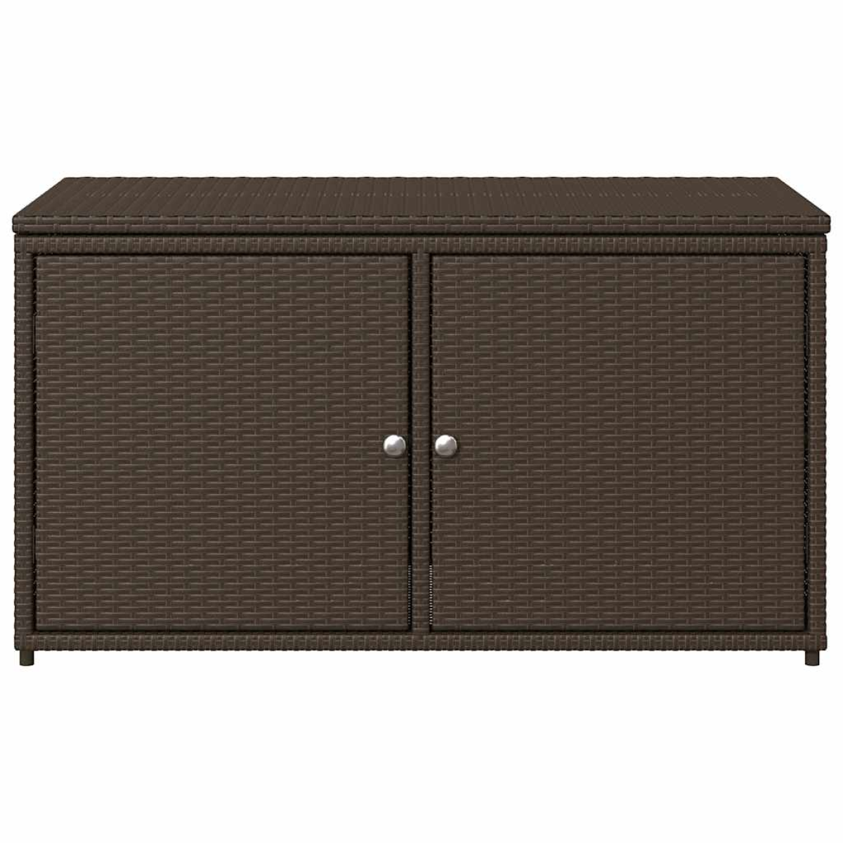 This garden storage cabinet is perfect for keeping your outdoor furniture cushions, gardening supplies, pool towels, and other items organised and easily accessible. Durable material: PE rattan, also known as poly rattan, is a strong, low-maintenance synthetic material that looks like natural rattan. It's lightweight, easy to clean, and commonly used for outdoor furniture due to its durability and weather-resistant properties.Ample storage space: This outdoor storage cabinet has a large space behind the two doors to store your garden tools, pool toys, outdoor cushions, and more.Robust and stable frame: The powder-coated steel frame ensures the garden furniture is strong and stable for daily outdoor use. Practical design: Both 2 doors are equipped with stainless steel door knobs and magnets for easy opening and closing. The top lid helps for easy storage and easy access to your items. WarningTo prevent it being overturned, this product must be used with the provided wall attachment device. Good to know:To make sure your outdoor furniture stays beautiful, we recommend protecting it with a waterproof cover.