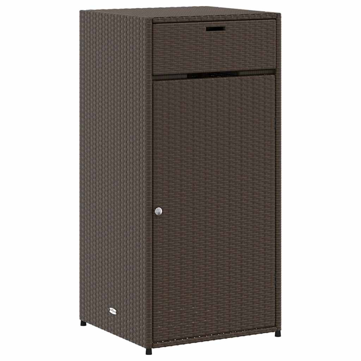 This garden storage cabinet is perfect for keeping your outdoor furniture cushions, gardening supplies, pool towels, and other items organised and easily accessible. Durable material: PE rattan, also known as poly rattan, is a strong, low-maintenance synthetic material that looks like natural rattan. It's lightweight, easy to clean, and commonly used for outdoor furniture due to its durability and weather-resistant properties.Ample storage space: This outdoor storage cabinet has a large space to store your garden tools, pool toys, outdoor cushions, and more.Robust and stable frame: The powder-coated steel frame ensures the garden furniture is strong and stable for daily outdoor use. Practical door: The door is equipped with a stainless steel door knob and a magnet for easy opening and closing. WarningTo prevent it being overturned, this product must be used with the provided wall attachment device. Good to know:To make sure your outdoor furniture stays beautiful, we recommend protecting it with a waterproof cover.