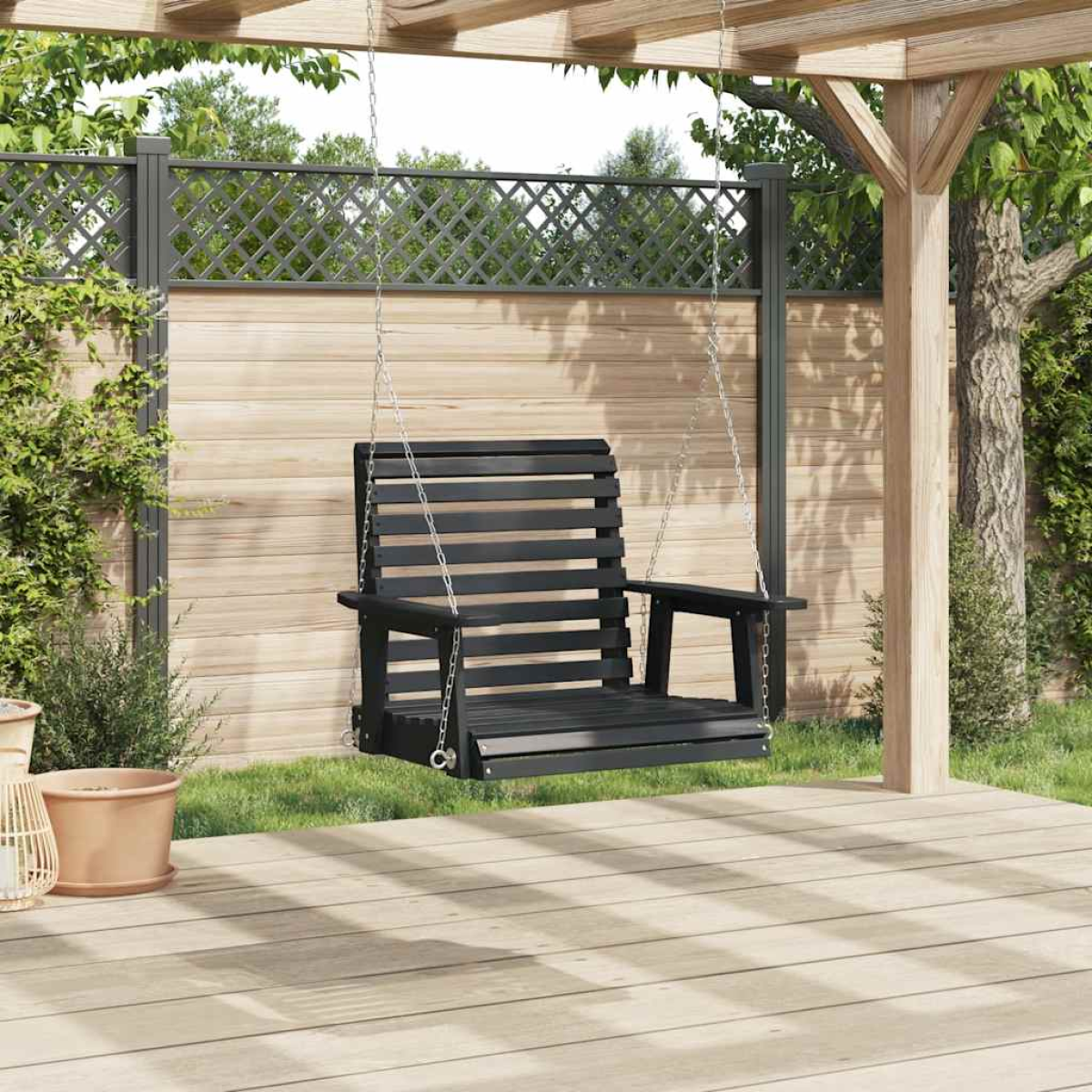 vidaXL Garden Swing Chair with Metal Chains Black Solid Wood Fir