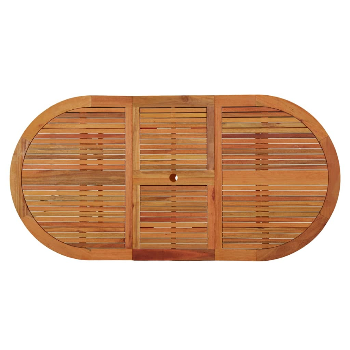 This extendable wooden garden table has a stylish design. It will be a great choice for alfresco dining in the garden or patio. Solid eucalyptus wood: Solid eucalyptus wood is a beautiful natural material. Eucalyptus wood is extremely dense and water repellent.Extendable design: The wooden garden table is extendable, the table top can be enlarged to require a greater surface area when it is needed.Practical umbrella hole: This solid wood table features an umbrella hole to provide an appropriate spot for your umbrella to help you avoid sunlight and rain. Note:In order to extend the life of your outdoor furniture, we recommend you to clean it regularly and do not leave it outdoors without protection unnecessarily.Clean: Use a mild soap solution.Storing: If possible, store in a cool, dry place indoors. If the product is stored outdoors, protect it with a waterproof cover. Wipe and dry the excess water or snow from flat surfaces after a rain or snowfall. Allow sufficient air circulation to avoid moisture-related damage.
